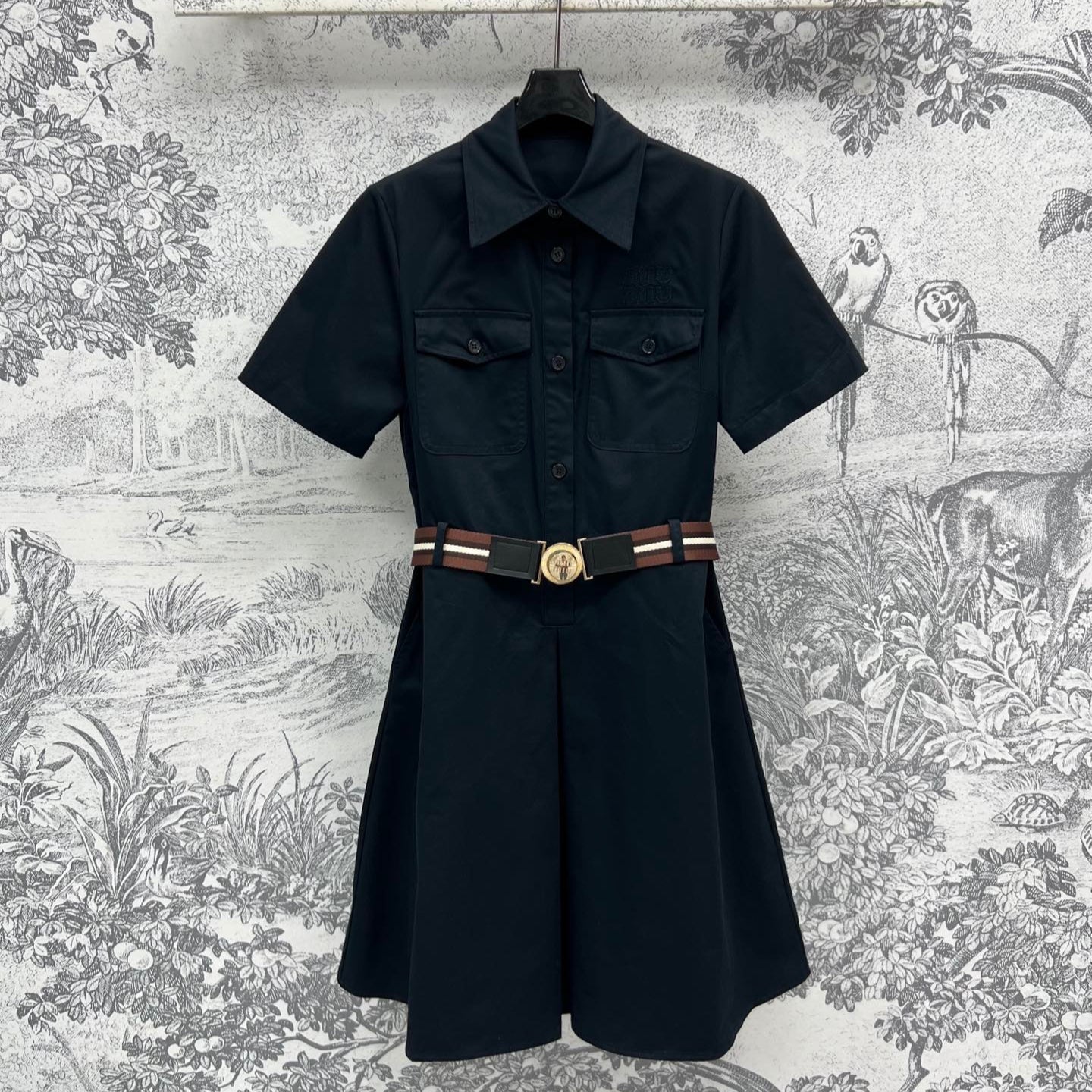 Miu Miu 25 Belt Decorated Denim Dress Black Cotton