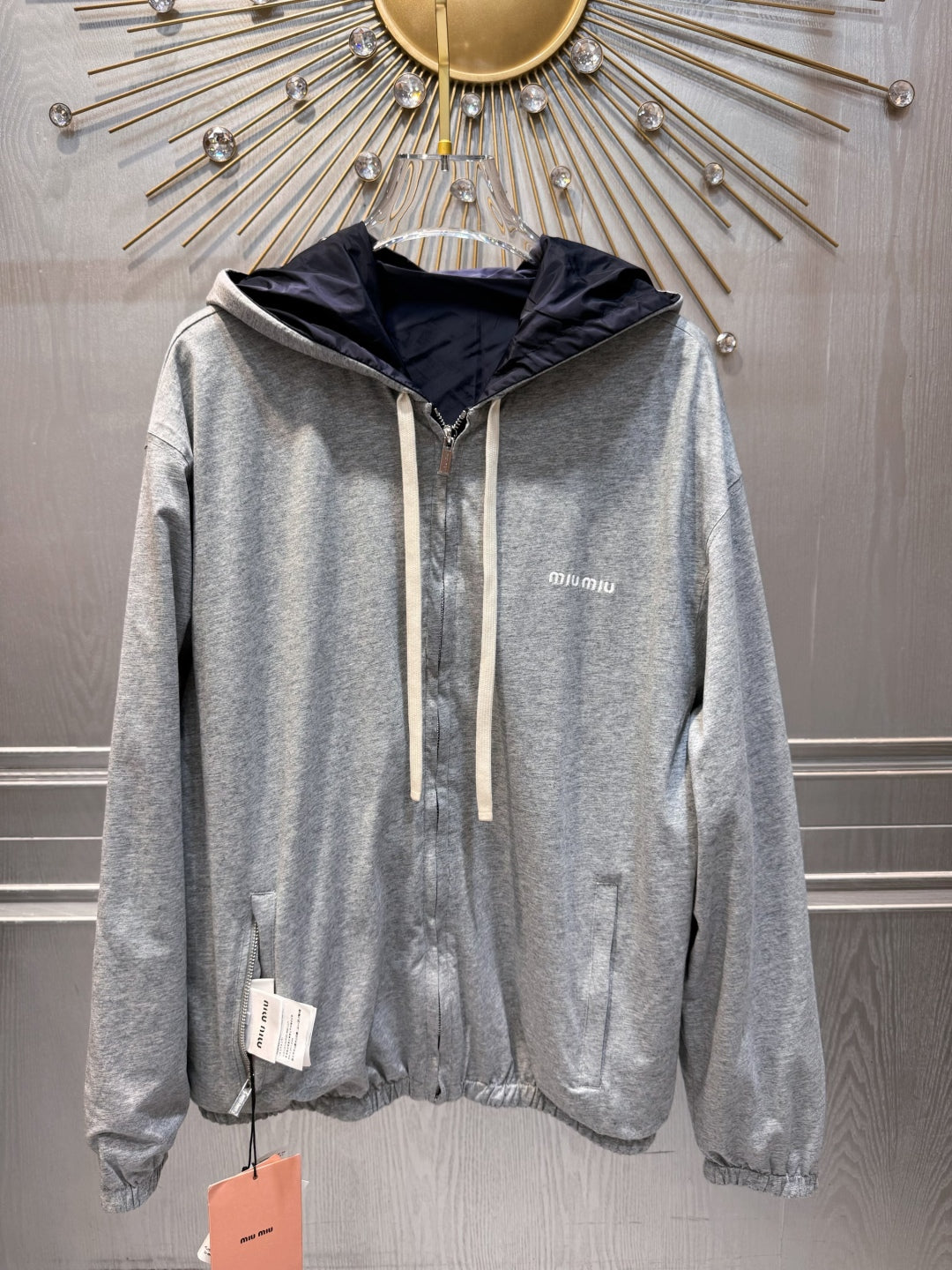 Miu Miu 25 Jacket Navy Blue Gray Cotton