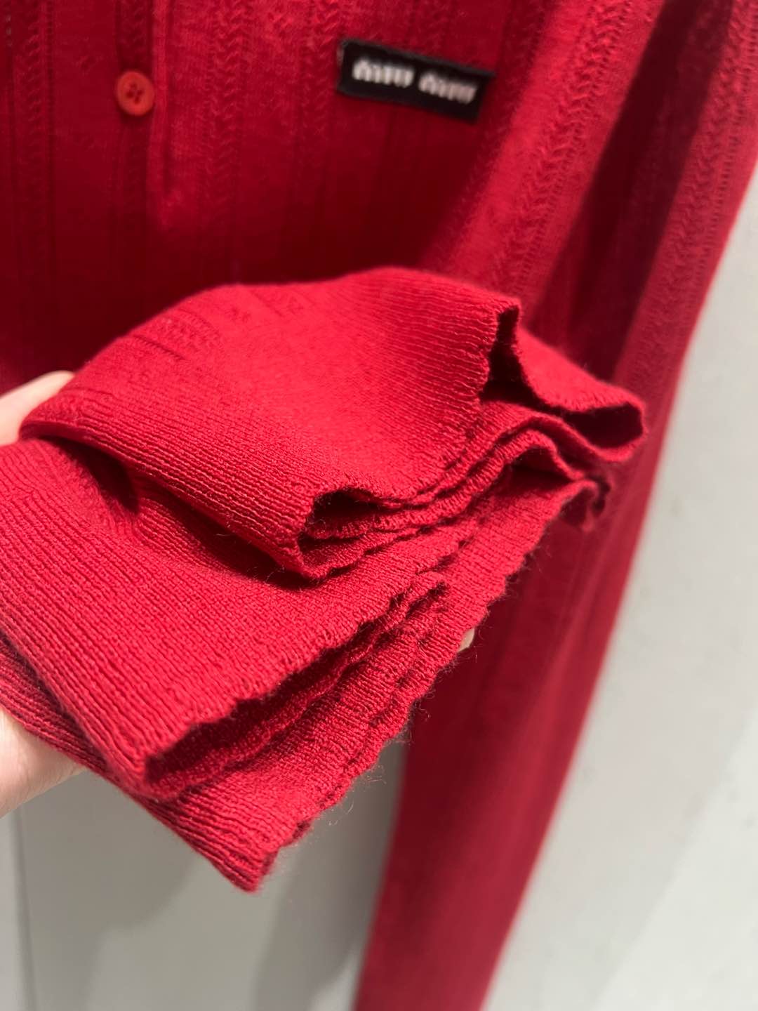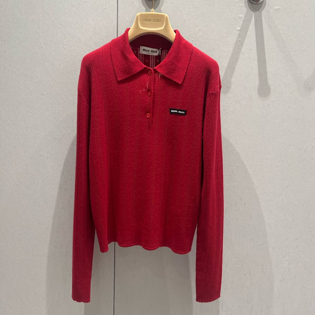 Miu Miu 25 Knitted Polo Shirt Red Cashmere 209039