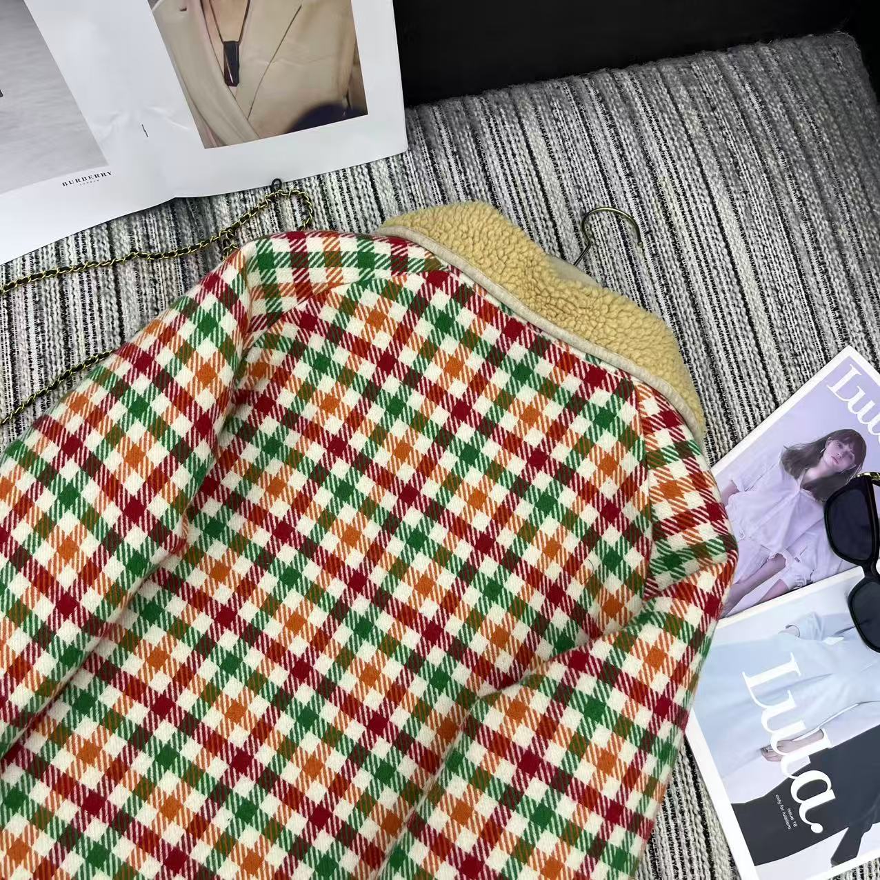 Miu Miu 25 Plaid Shearling Collar Coat Multicolor 302150