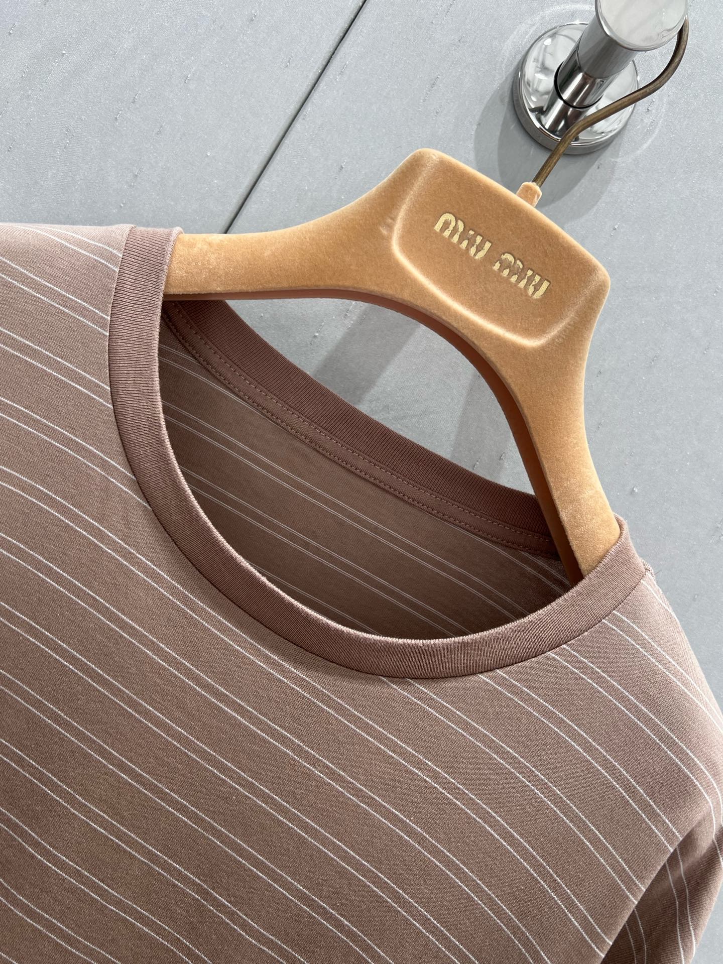 Miu Miu 25 Striped Long-sleeved T-shirt Brown Cotton 211207