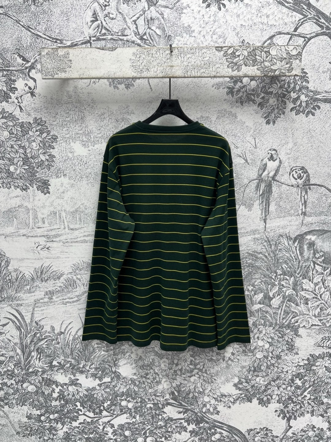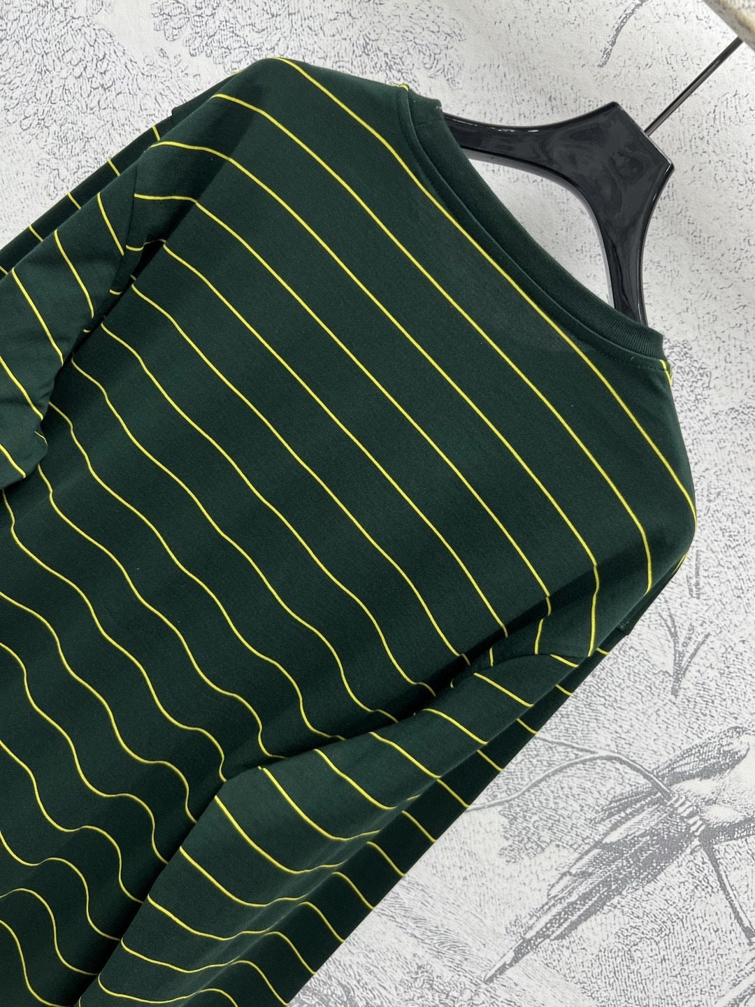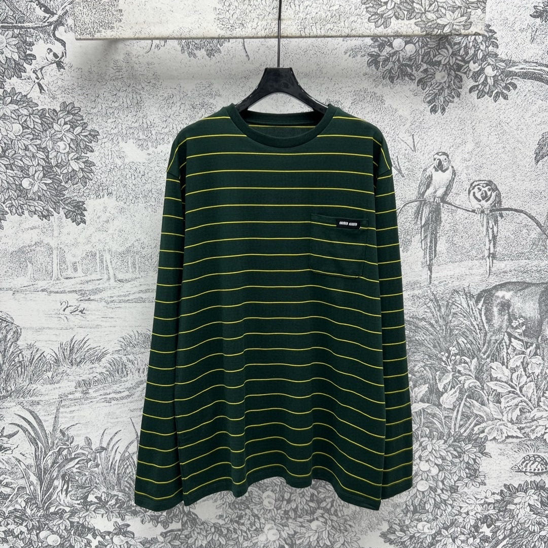 Miu Miu 25 Striped Long-sleeved T-shirt Green Cotton