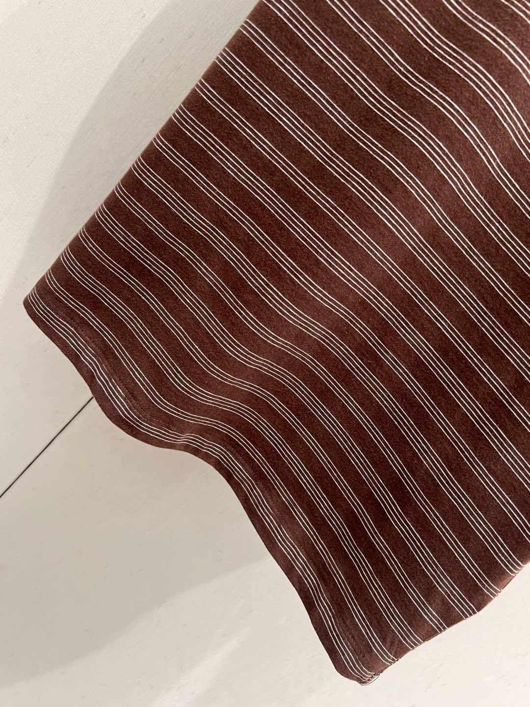 Miu Miu 25 Striped Round Neck Short-sleeved T-shirt Brown Cotton
