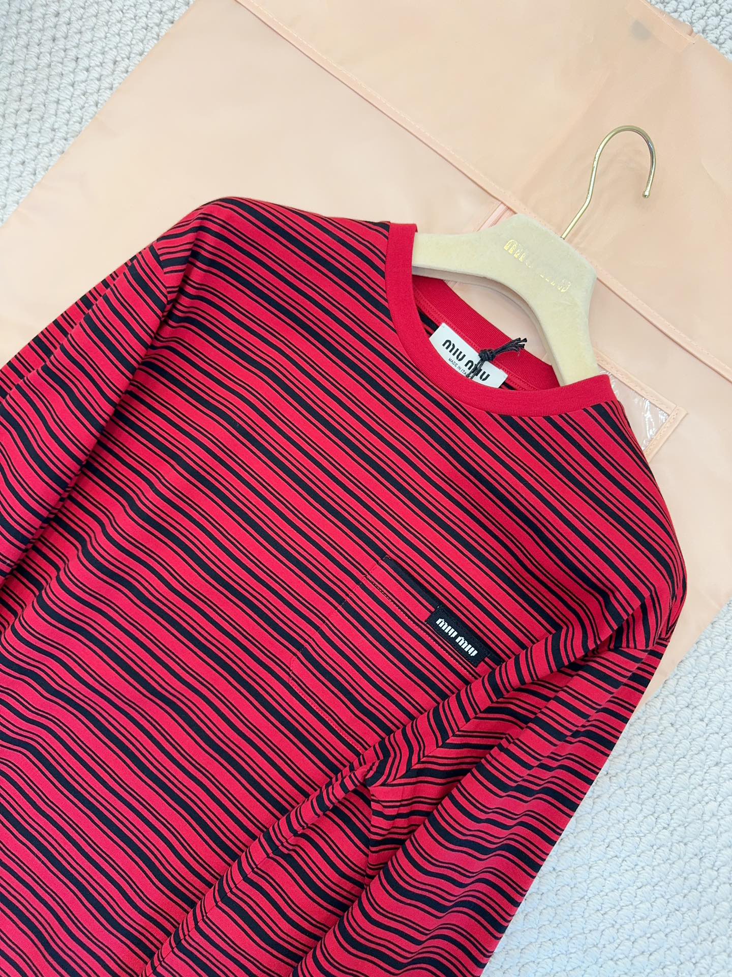 Miumiu 2025 Striped Long-sleeved T-shirt Red Cotton