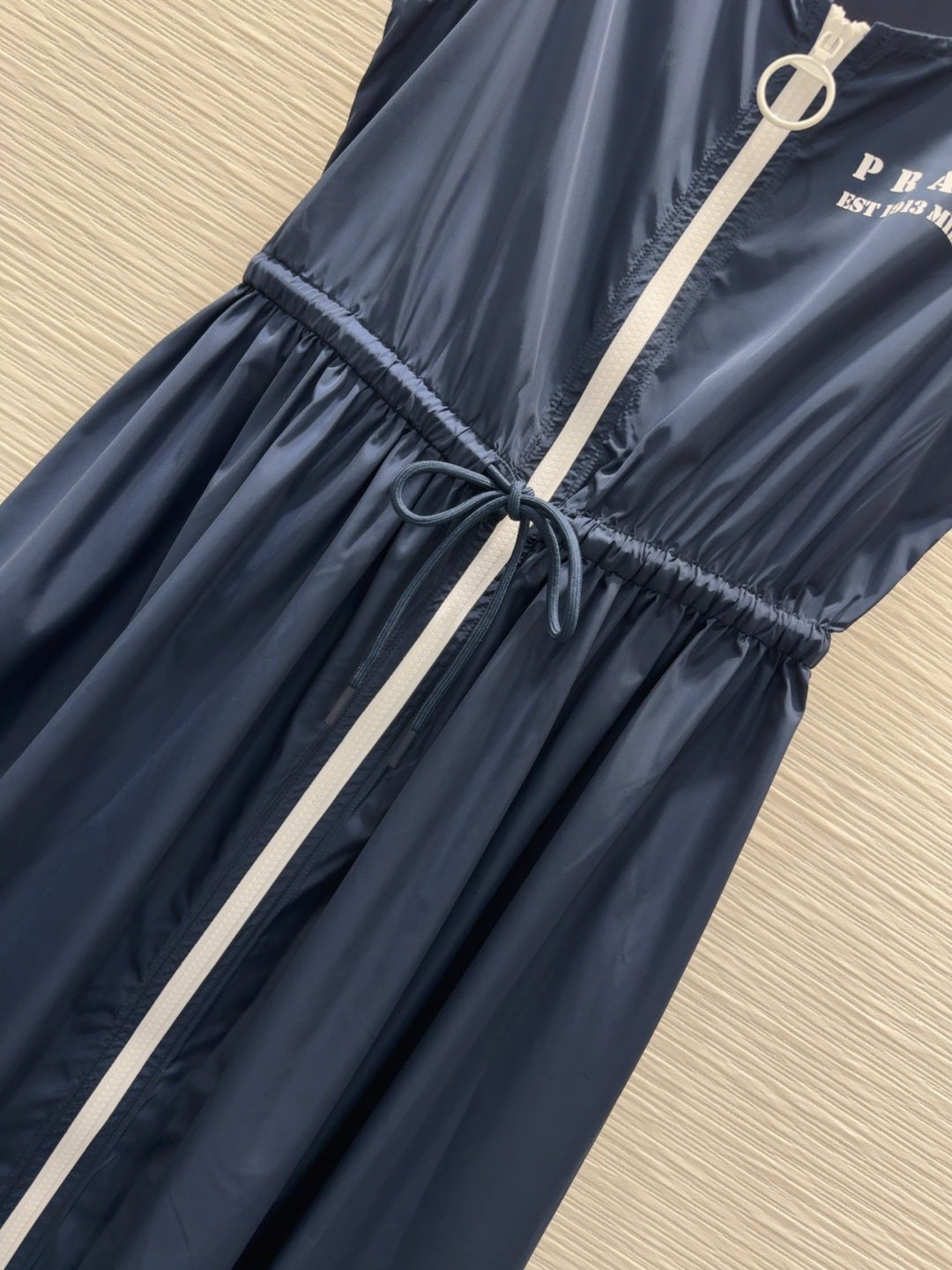 Prada 2025 Sleeveless Dress Navy Blue Polyester