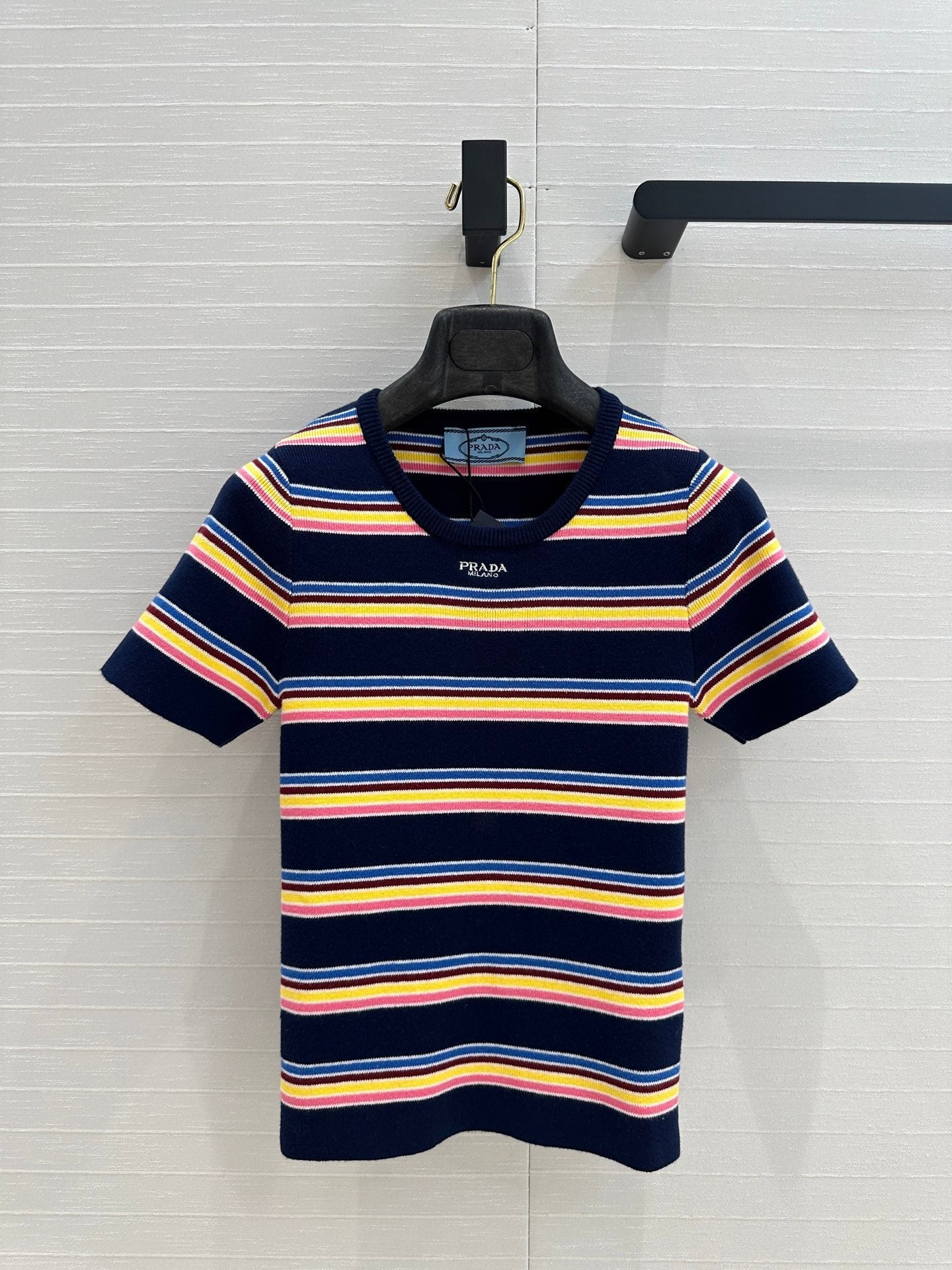 Prada 2025 Striped T-shirt Navy Blue mix colors Cotton