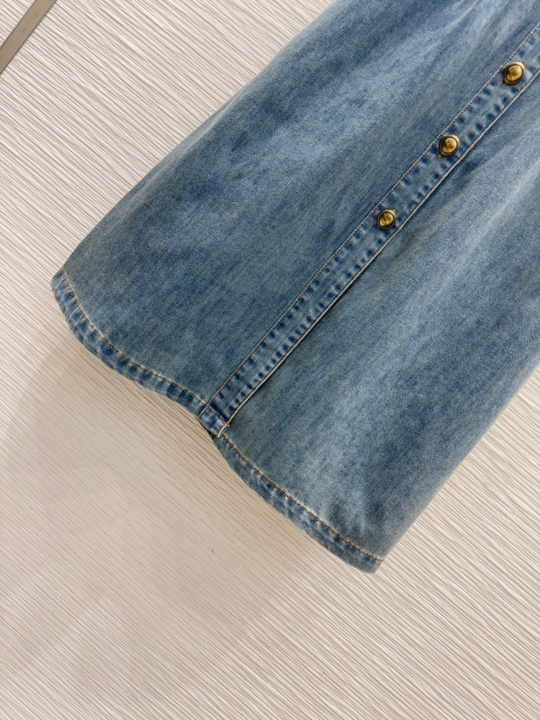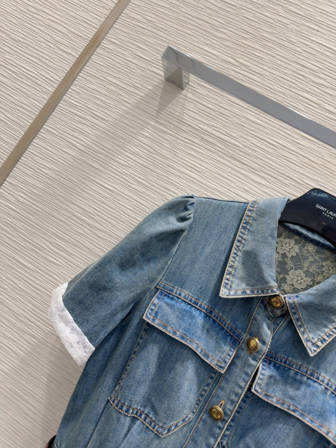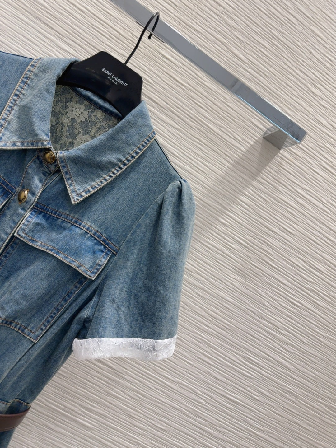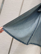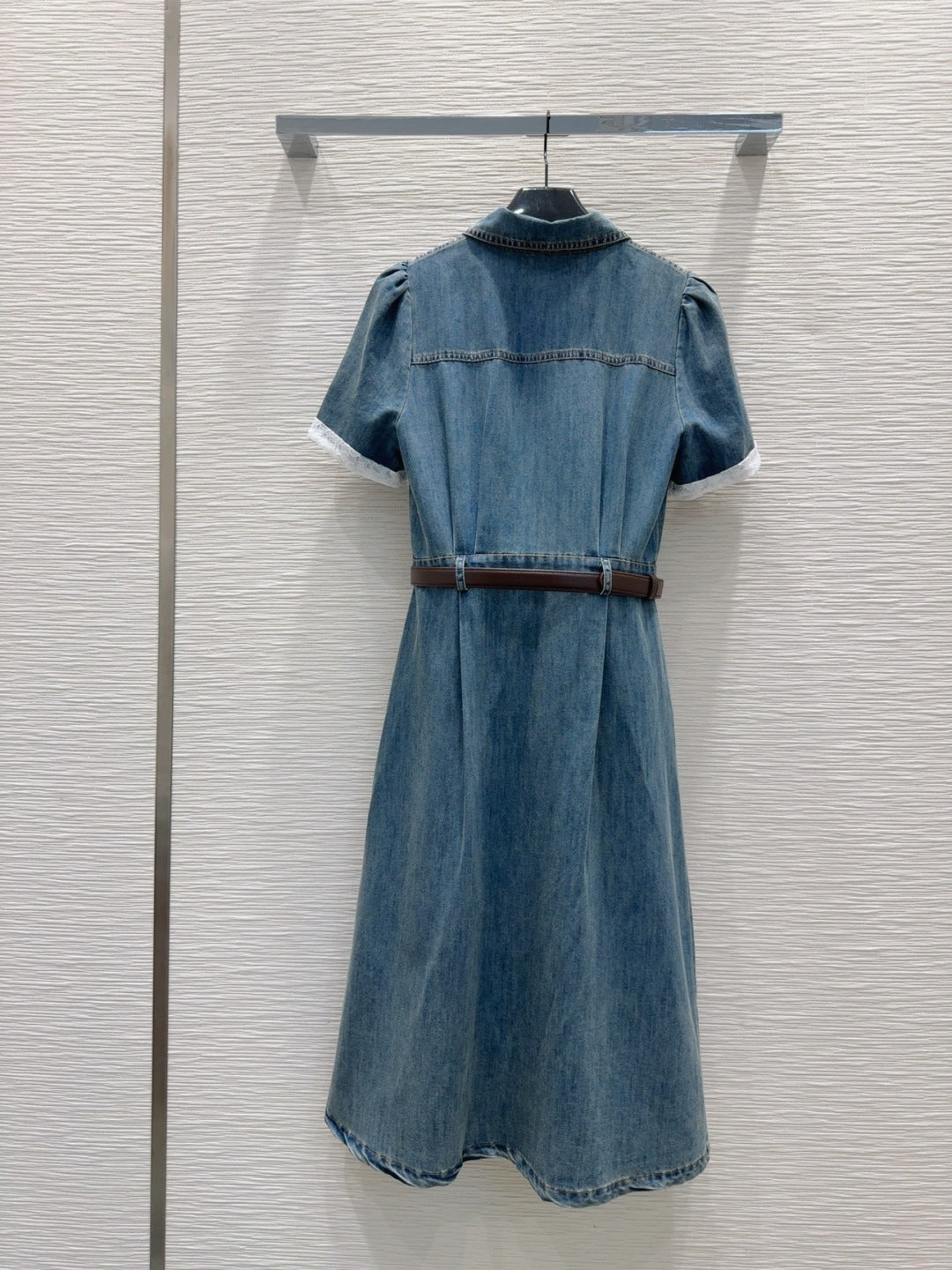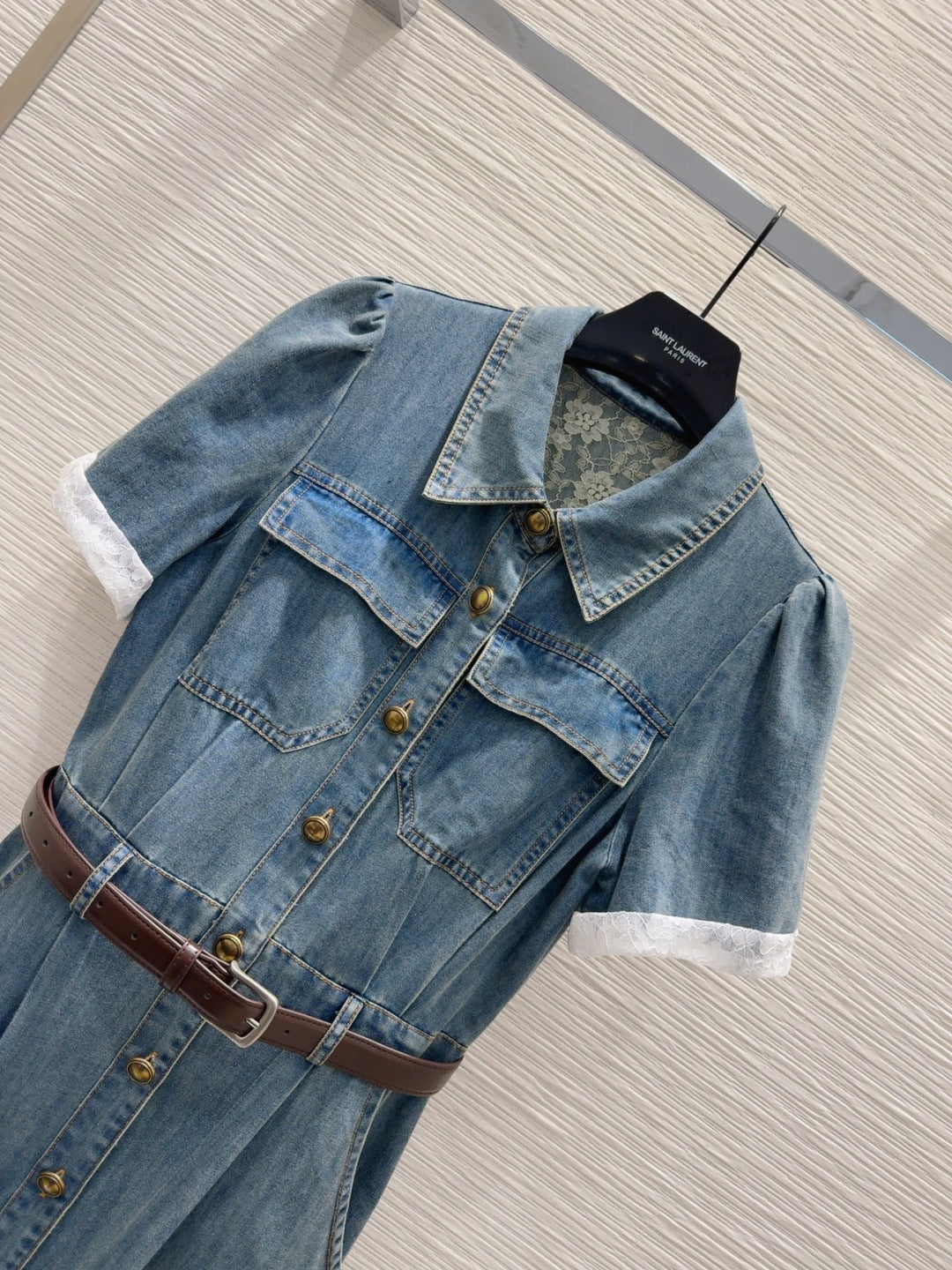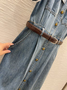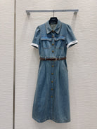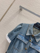 YSL 25 Denim Puff-sleeve Sress with Gathered Waist Blue Cotton