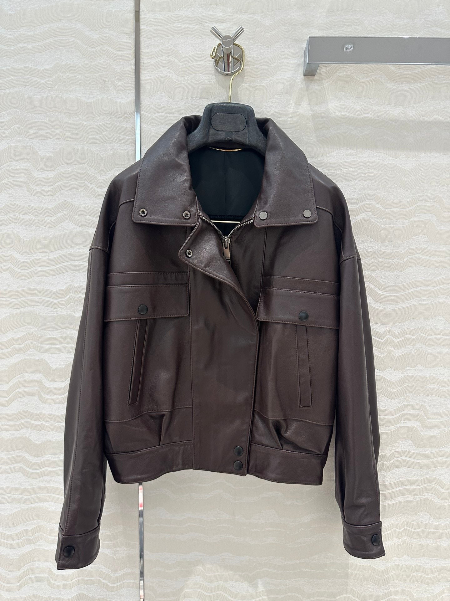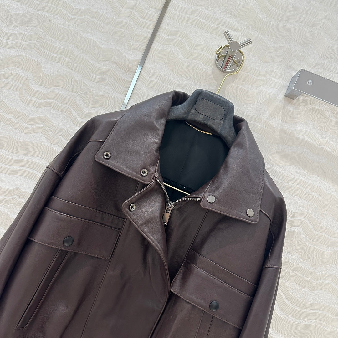 YSL Double Pocket Silhouette Jacket Brown Lambskin