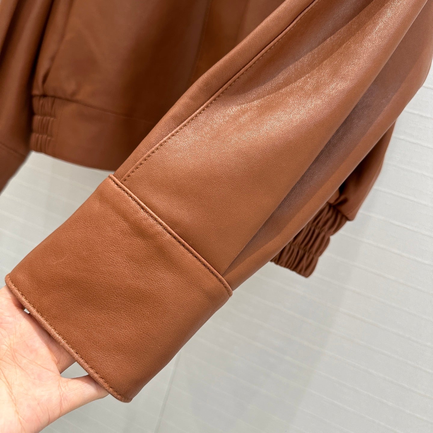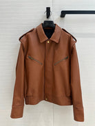 YSL Right-angle Shoulder Silhouette Jacket Brown Lambskin