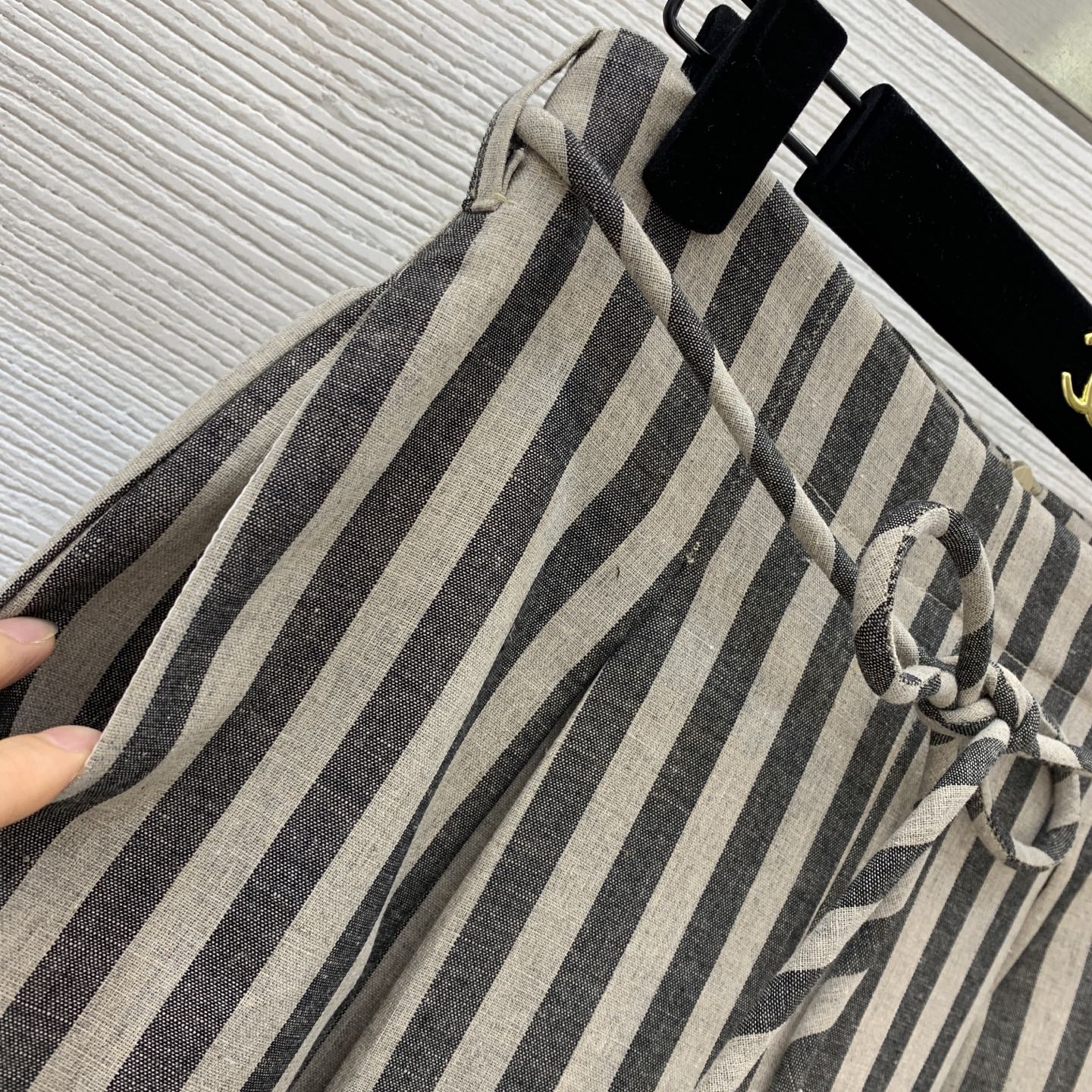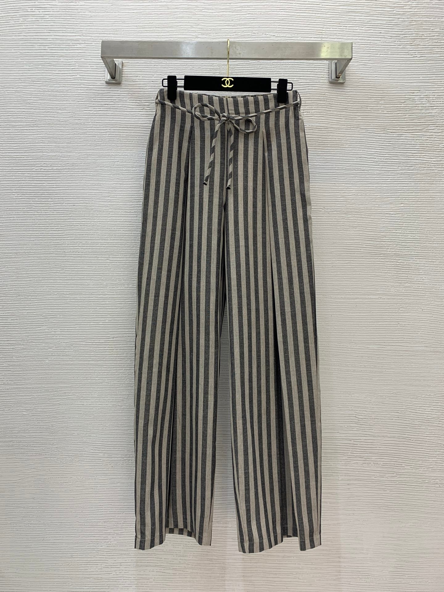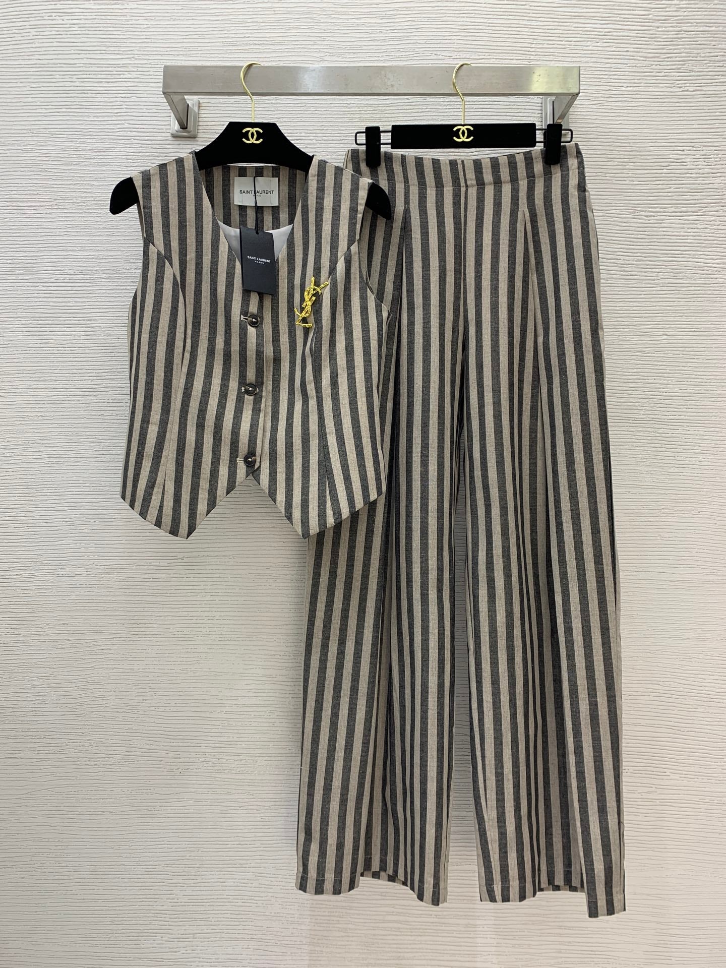 YSL Striped Two-piece Suit Beige mix Grey Linen