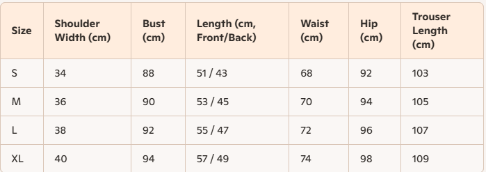 - For more information, please see the size guide below