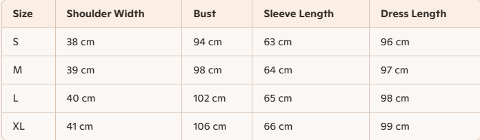 - For more information, please see the size guide below