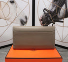 HM CLUTCH CONSTANCE 20.5 KHAKI CALFSKIN SILVER HARDWARE