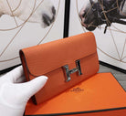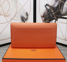HM CLUTCH CONSTANCE 20.5 ORANGE CALFSKIN SILVER HARDWARE