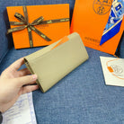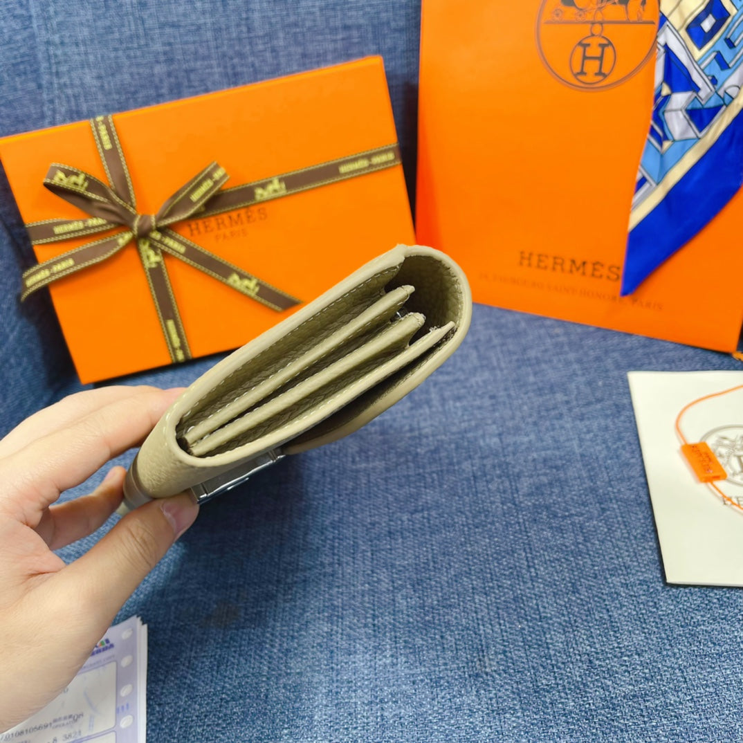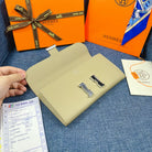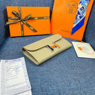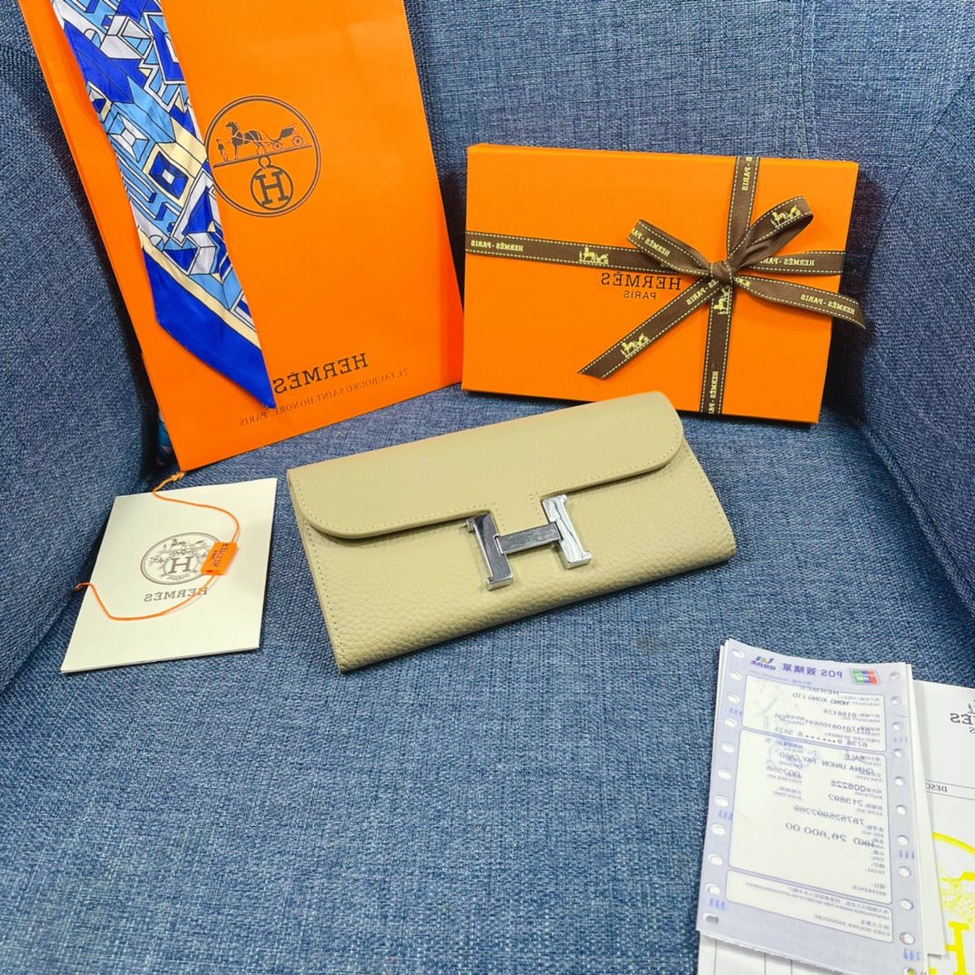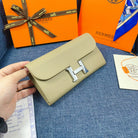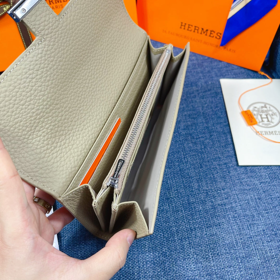 HM CLUTCH CONSTANCE 22 KHAKI CALFSKIN SILVER HARDWARE