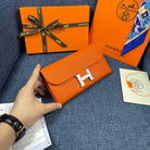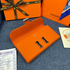 HM CLUTCH CONSTANCE 22 ORANGE CALFSKIN SILVER HARDWARE