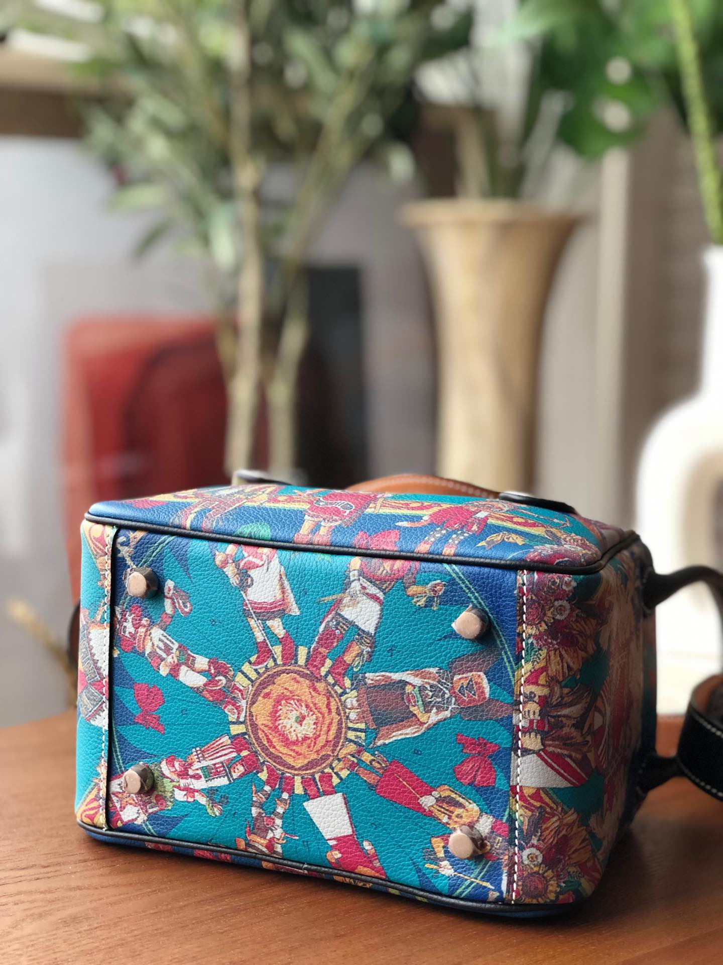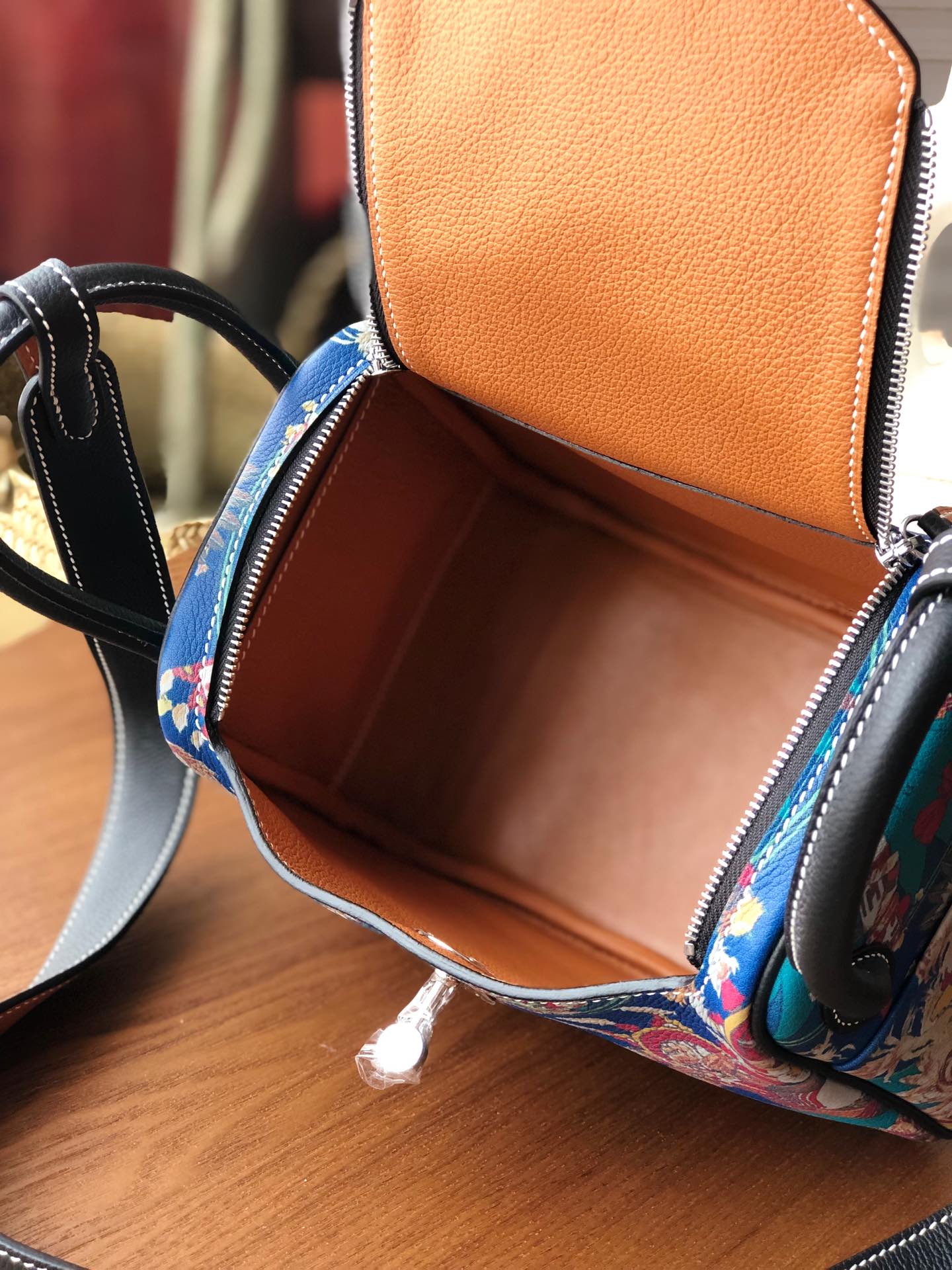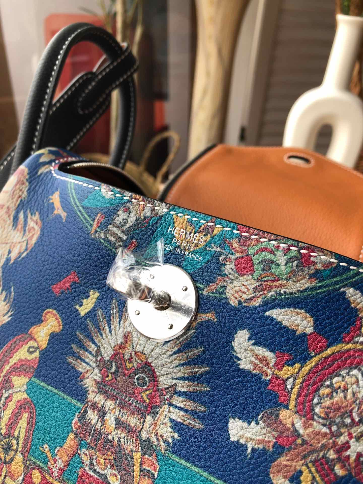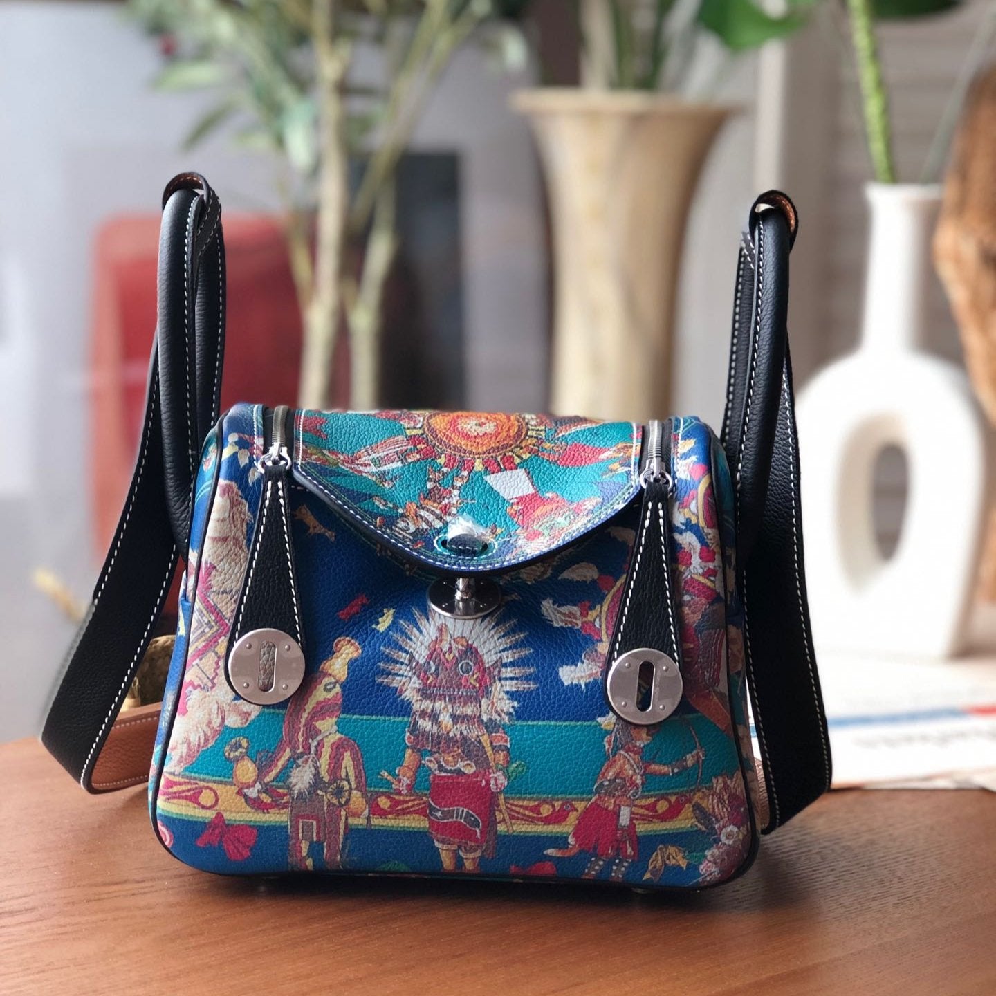 HM LINDY MINI 19 BLUE TAURILLON CLEMENCE LEATHER WITH PATTERN