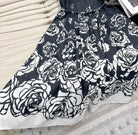 CD 2025 Floral Short-sleeved Belt Shirt Dress Black mix White Cotton