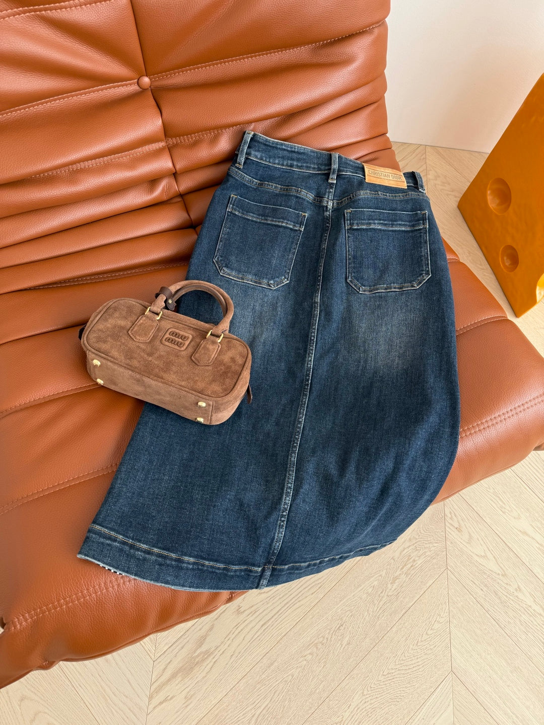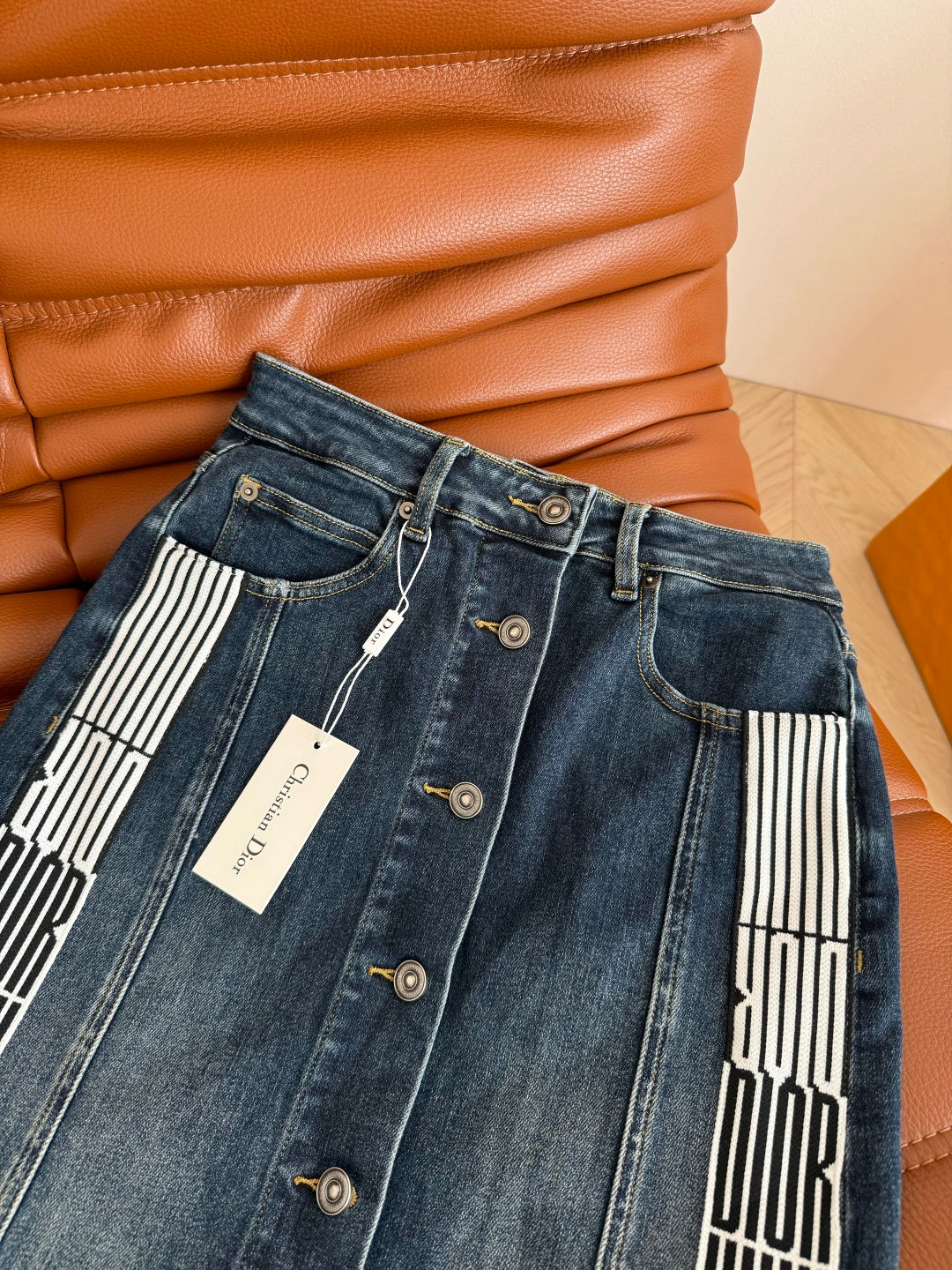 CD 2025 High Waisted Skirt Blue Cotton