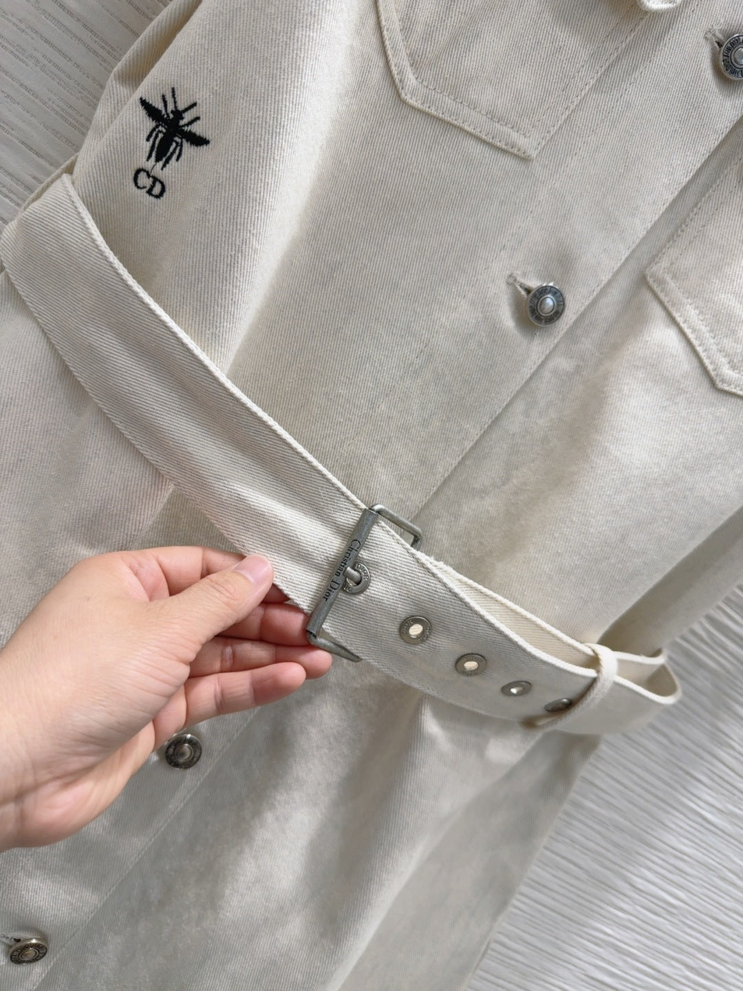 CD 2025 Short-sleeved Shirt Dress Light Beige Cotton