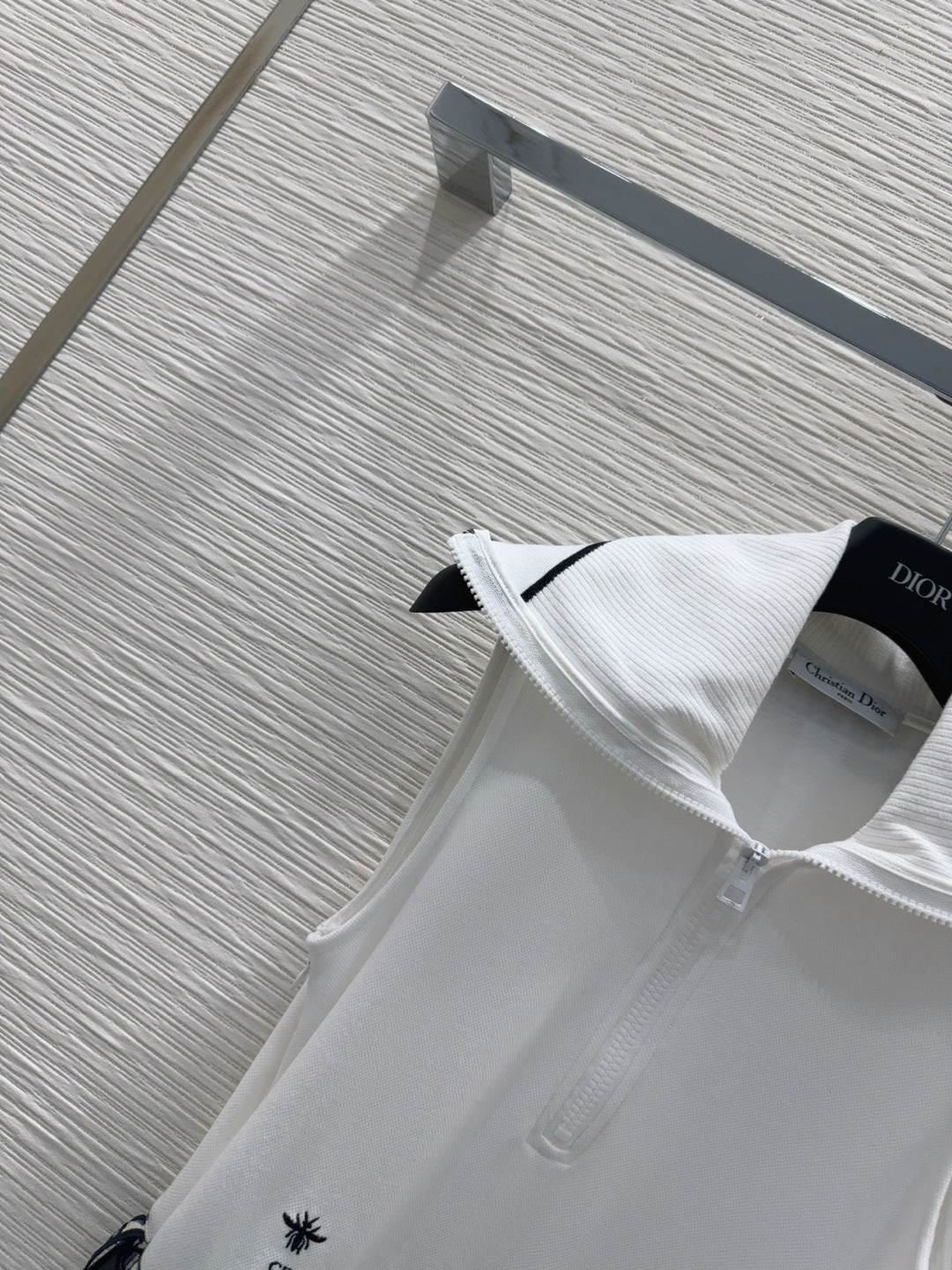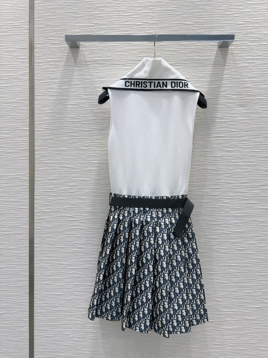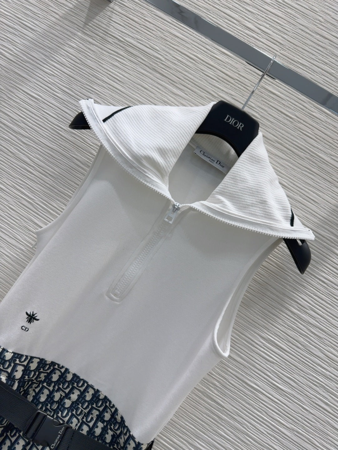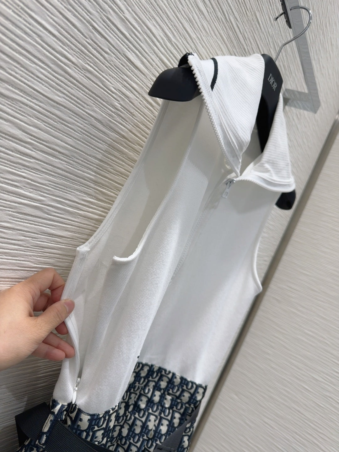 CD 2025 Vest Dress White mix Navy blue Cotton Polyester