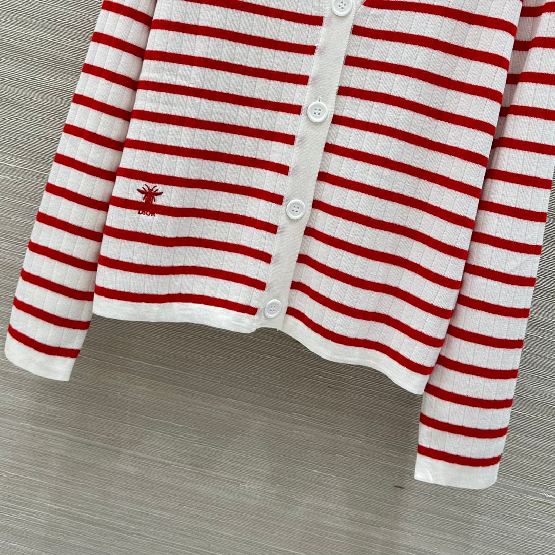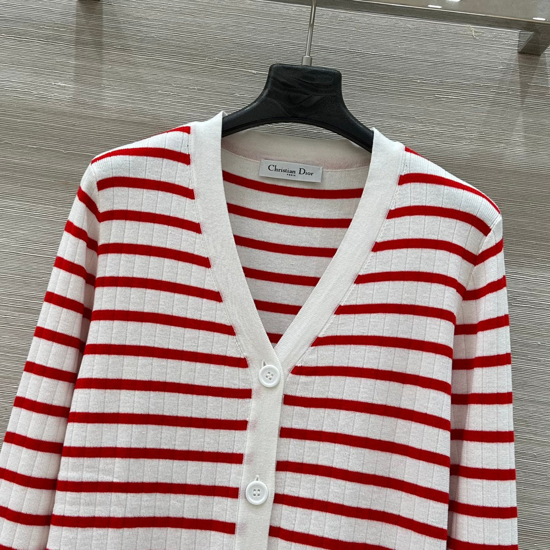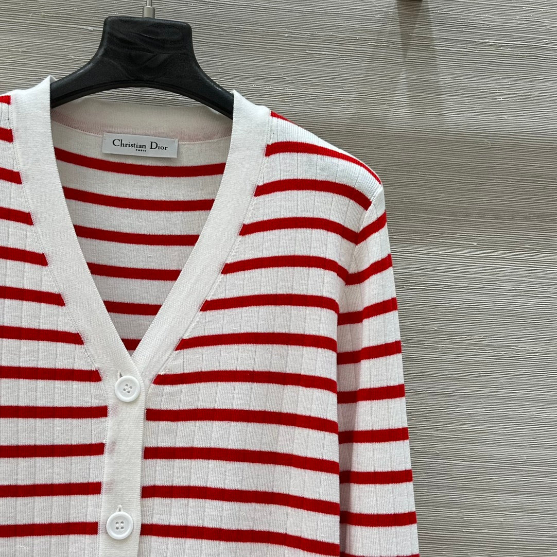 CD 25 Striped knitted Cardigan Red White Cotton