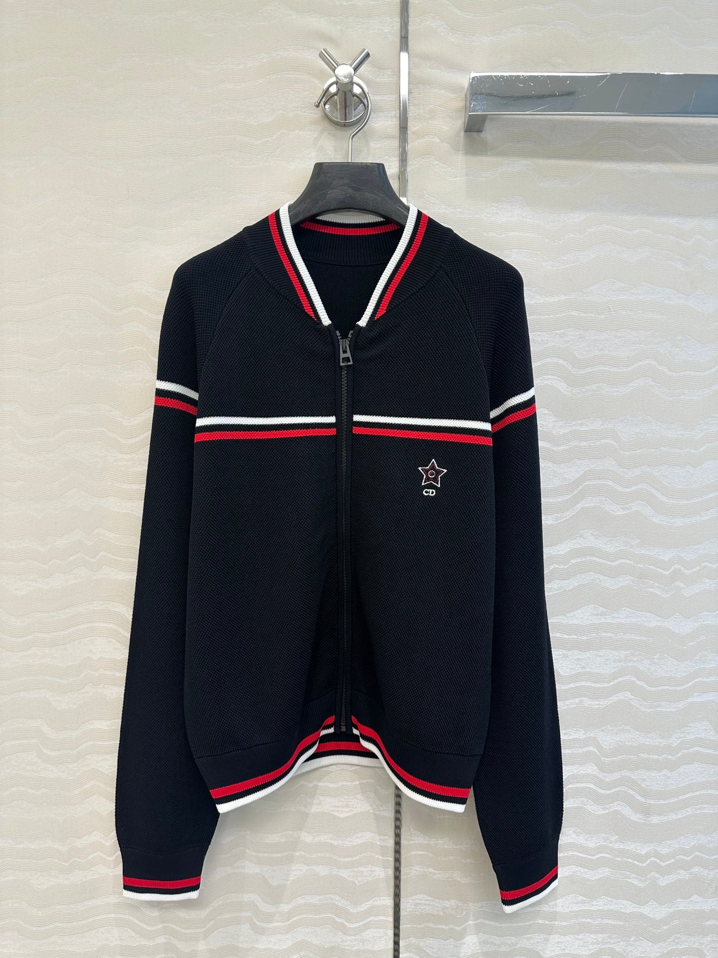 CD Knitted Zipper Jacket Black Rayon Polyester