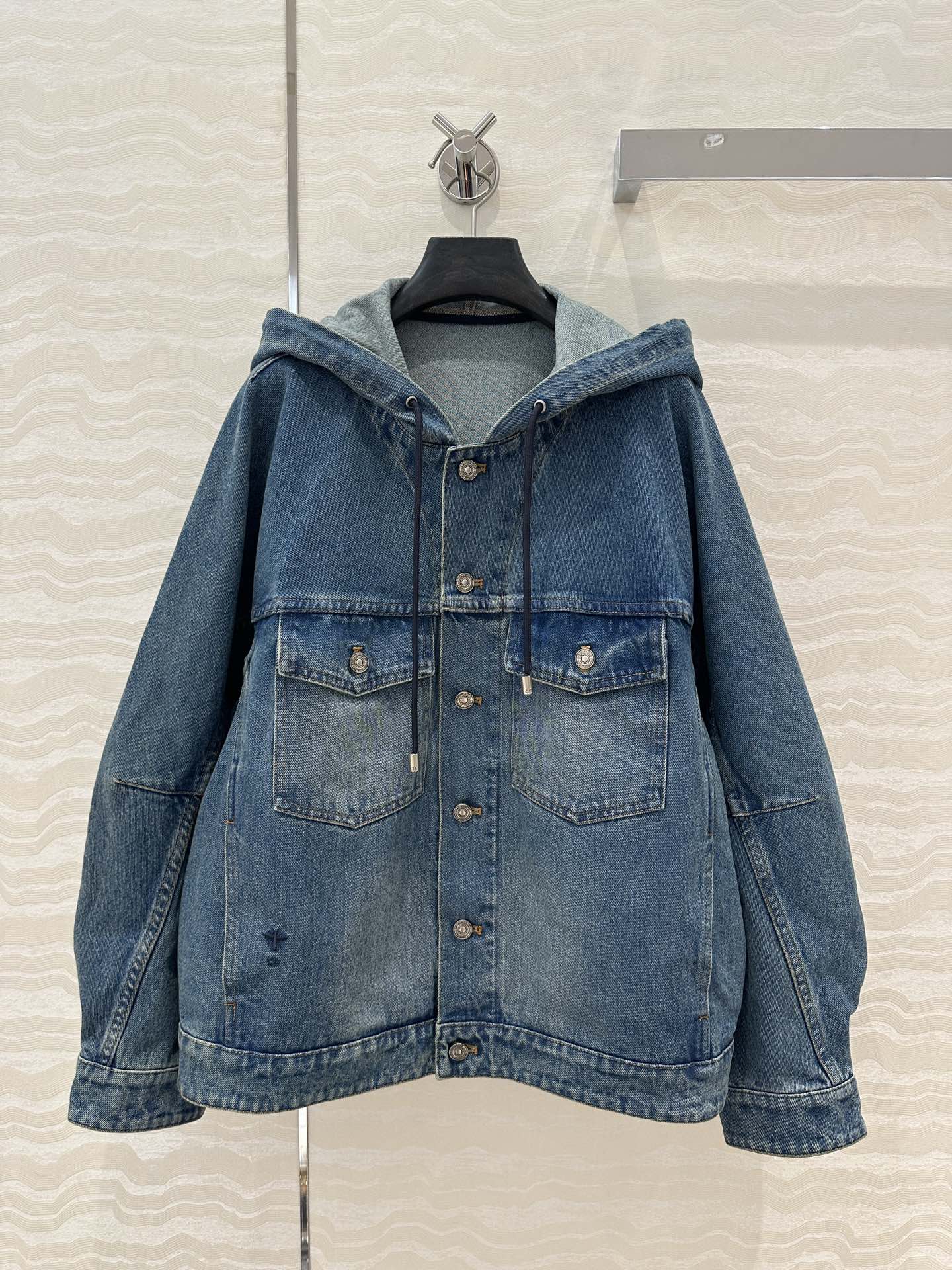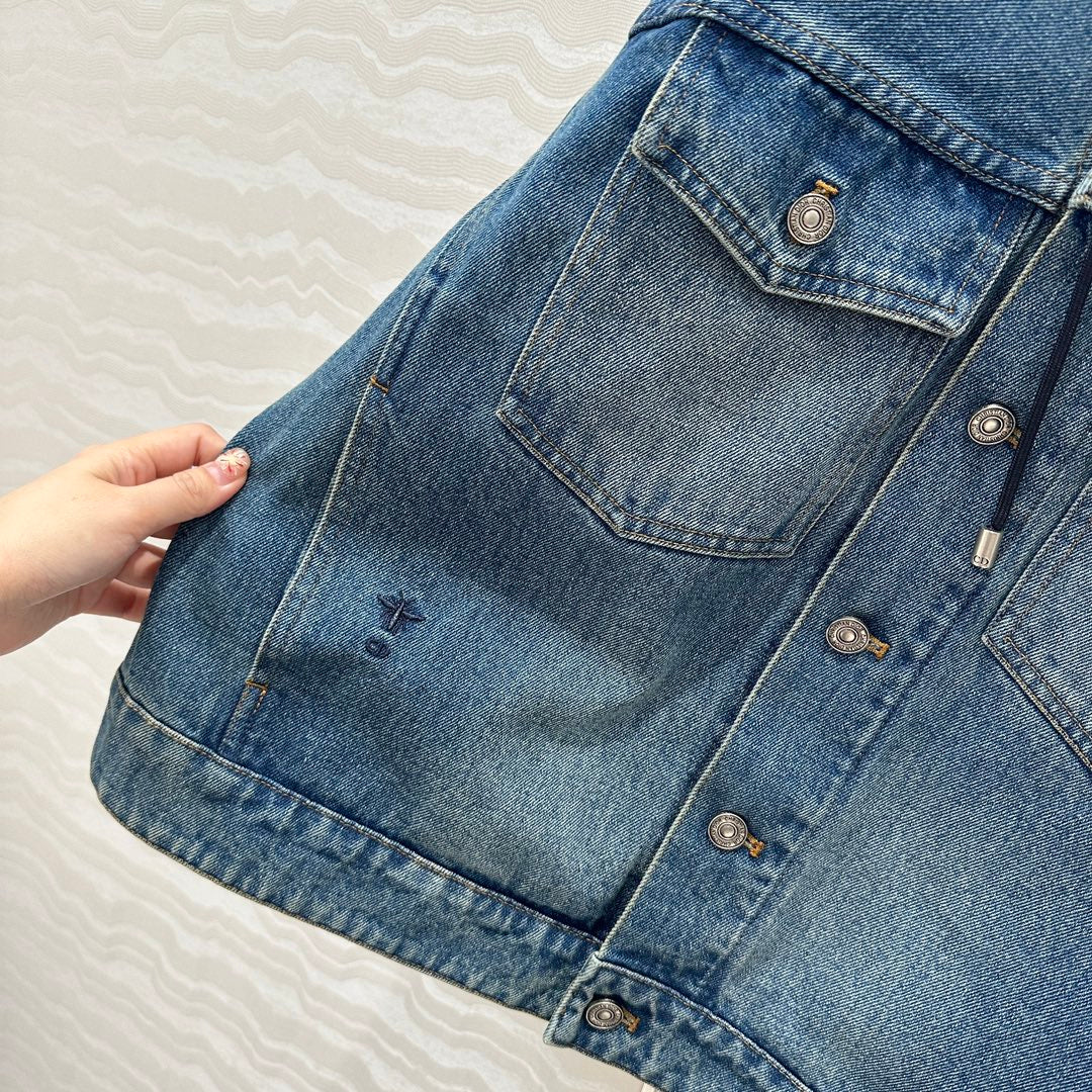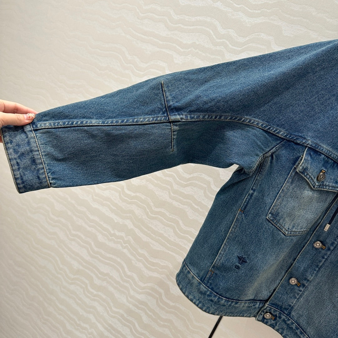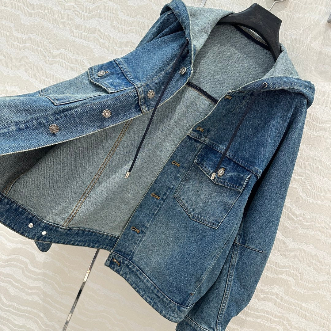 CD Ripped Straight Hooded Jacket Blue Cotton