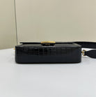 BAGUETTE 27 IN BLACK CROCODILE PATTERN GLOSSY CALFSKIN GOLD HARDWARE