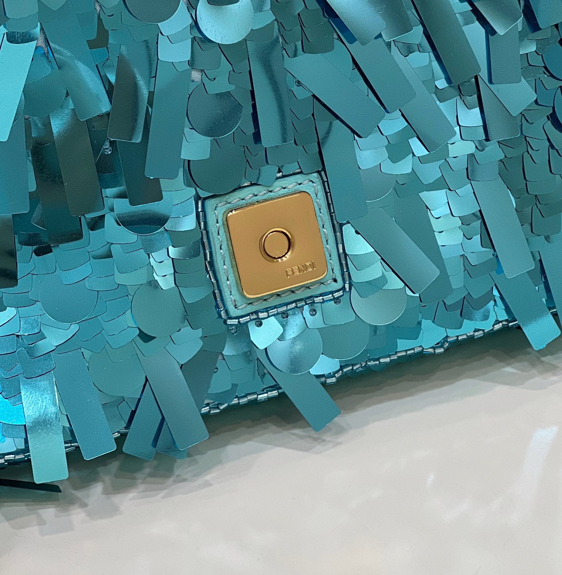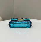 BAGUETTE MINI 19 IN BRIGHT TURQUOISE SEQUINS GOLD HARDWARE
