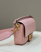 BAGUETTE WITH FF MOTIF 27 IN LIGHT PINK SOFT LAMBSKIN GOLD HARDWARE