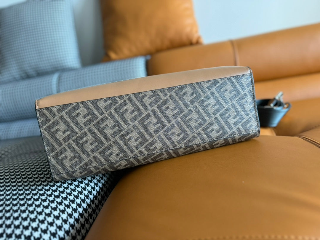 FENDI 38 BAG FF MONOGRAM FF CAMEL BROWN CALFSKIN WITH STRAP