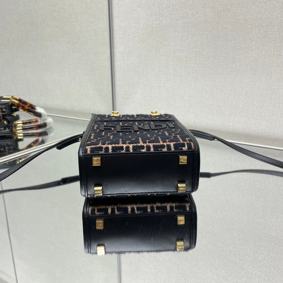 MINI SUNSHINE 18 IN BROWN RAFFIA AND BLACK WOOL CALFSKIN TRIM