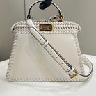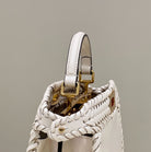 PEEKABOO ISEEU 27 IN WHITE SMOOTH CALFSKIN WITH WOVEN TRIM GOLD HARDWARE