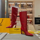Fendi 25ss high-heeled boots red sheepskin 502721