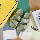 FENDI BAGUETTE DAD SANDALS IN ASH GREY CALFSKIN