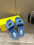 FENDI BAGUETTE SLIDE SLIPPERS IN CERULEAN BLUE WOOL