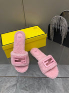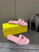 FENDI BAGUETTE SLIDE SLIPPERS IN LIGHT PINK WOOL
