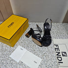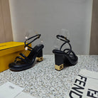 FENDI CHUNKY HIGH-HEELED SANDAL IN BLACK CALFKIN WITH GOLD HARDWARE