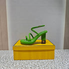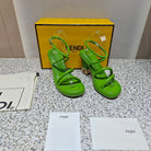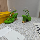 FENDI CHUNKY HIGH-HEELED SANDAL IN SHAMROCK GREEN CALFKIN WITH GOLD HARDWARE