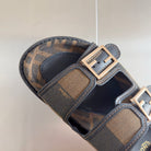FENDI DAD SANDAL IN MOCHA BROWN MIX BLACK MONOGRAM JACQUARD FABRIC