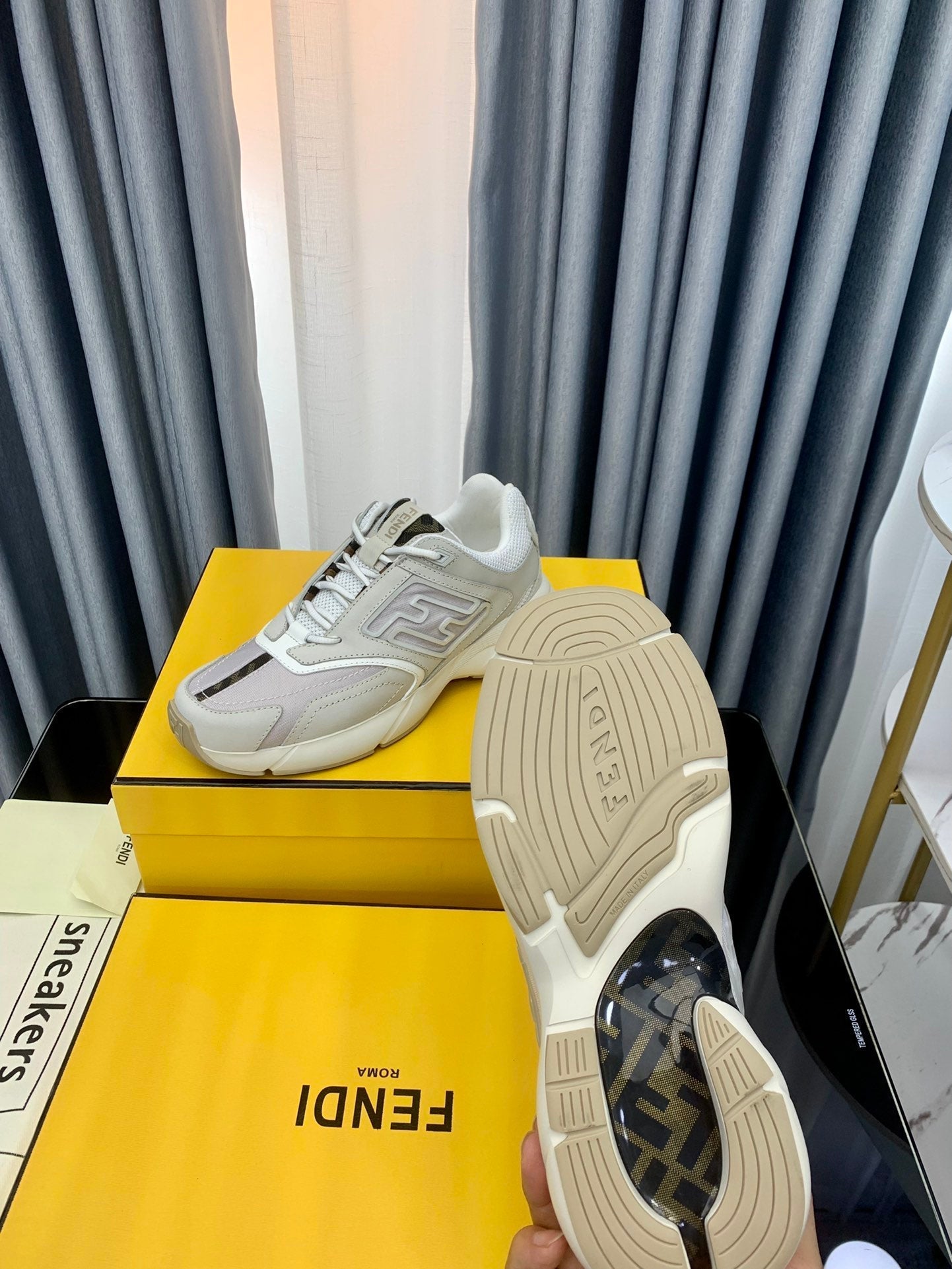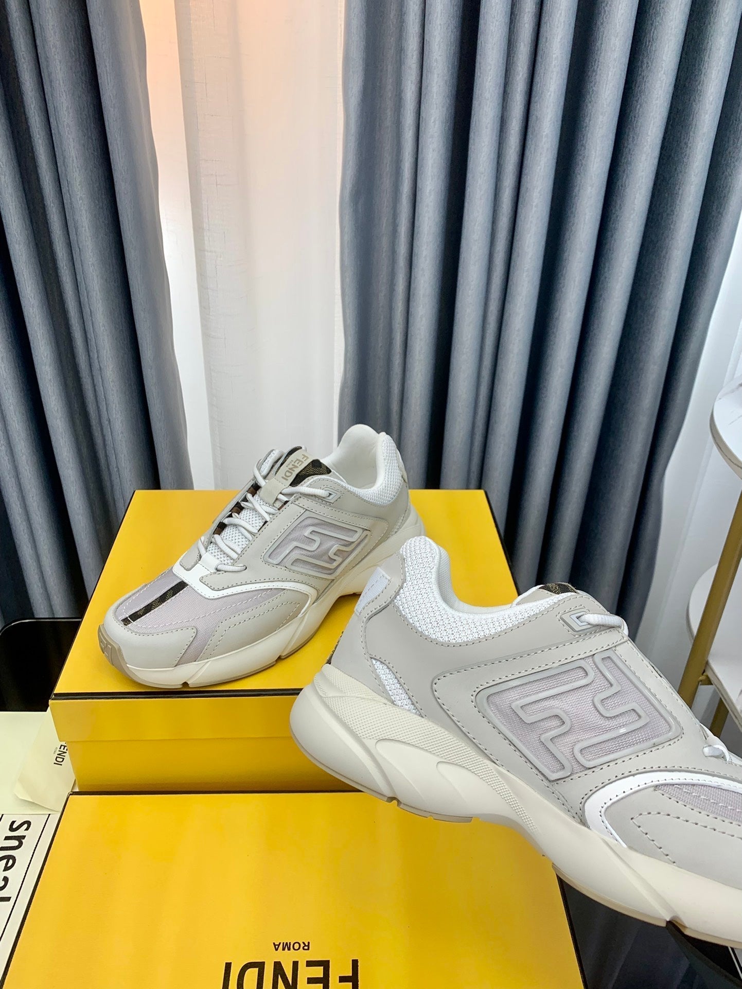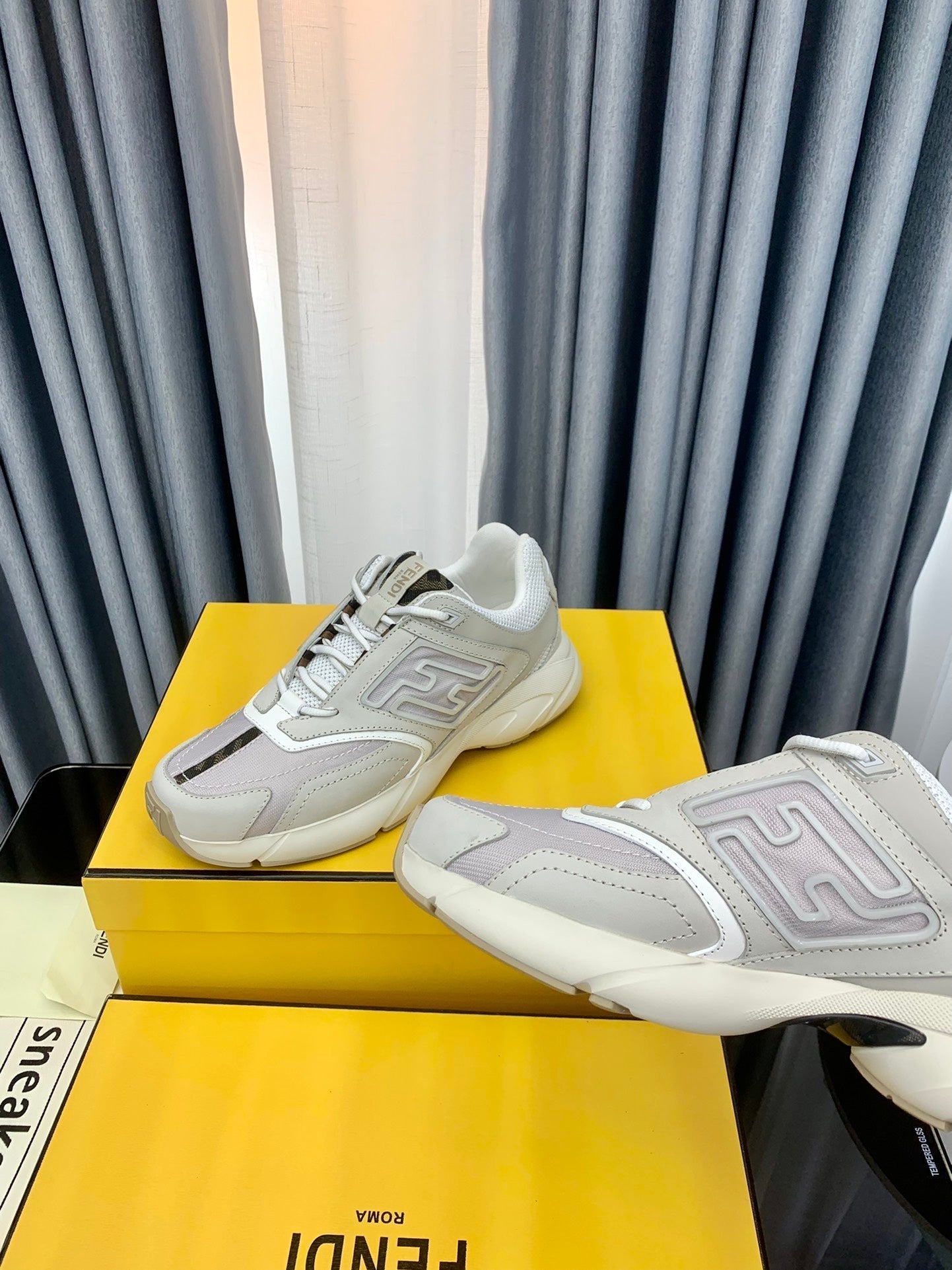 FENDI FASTER TRAINER IN GREY CALFSKIN AND SUEDE