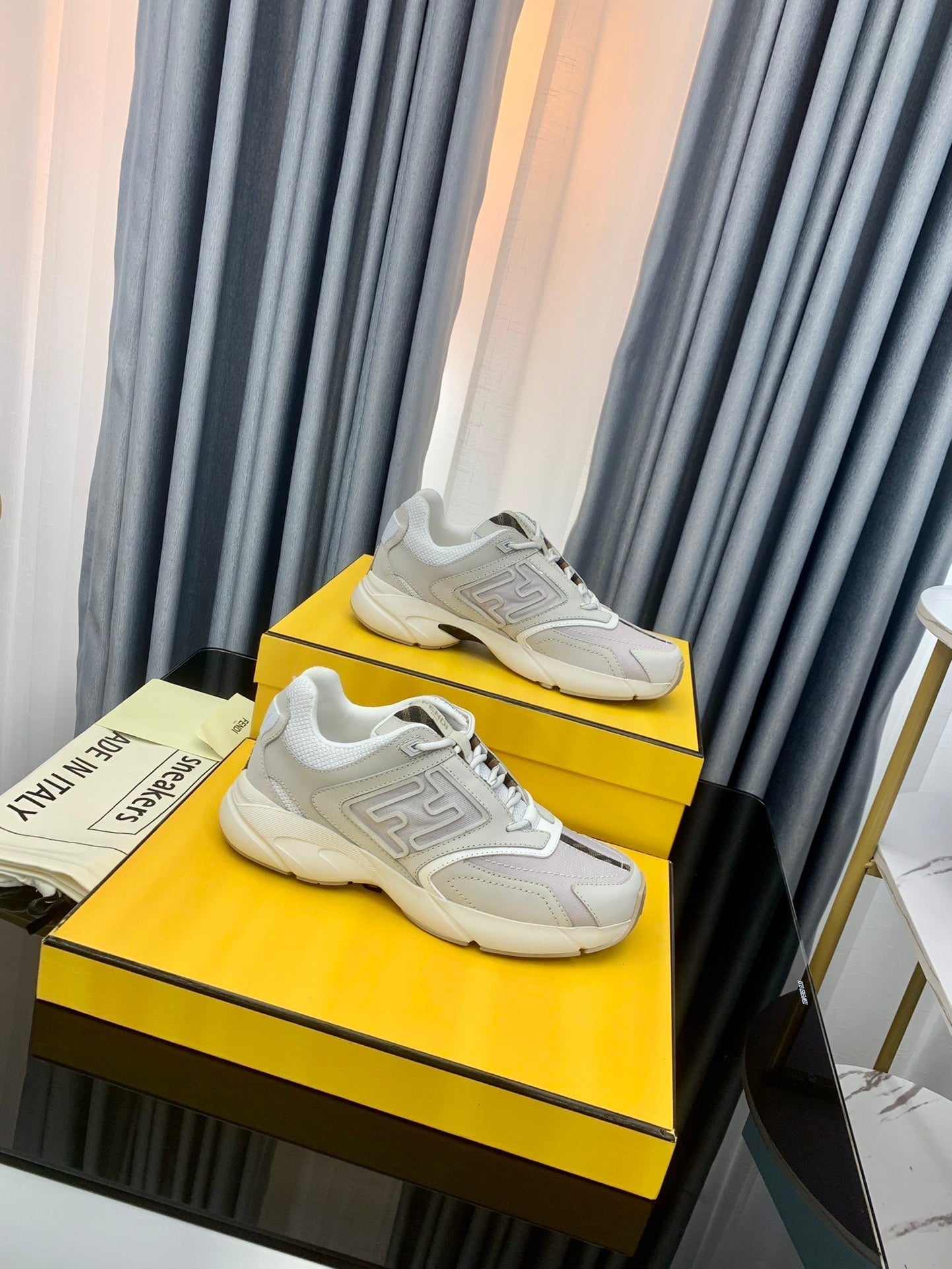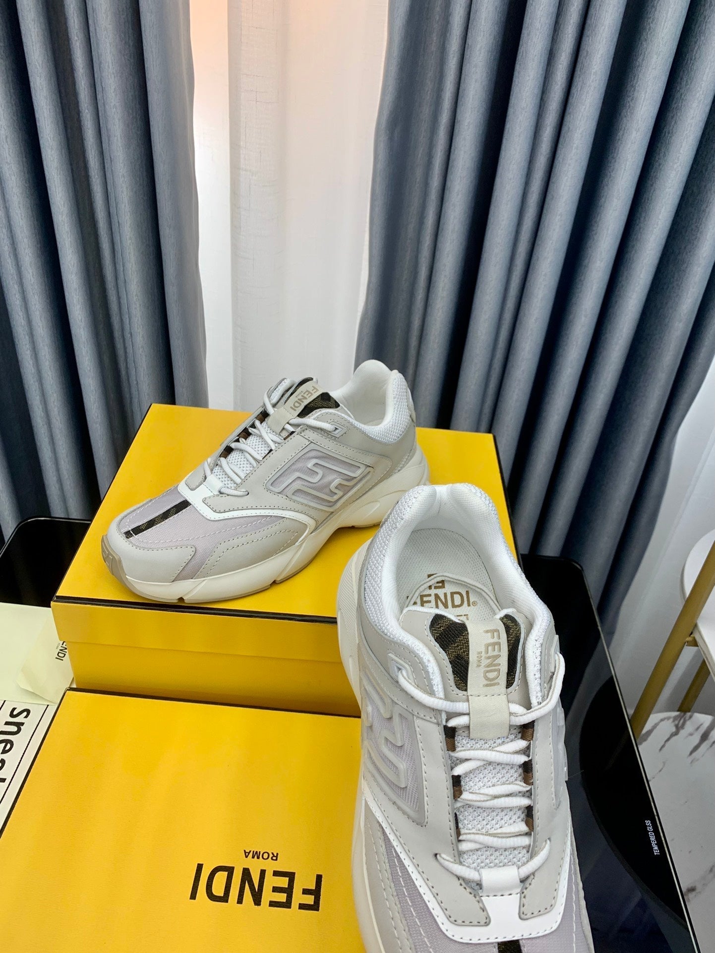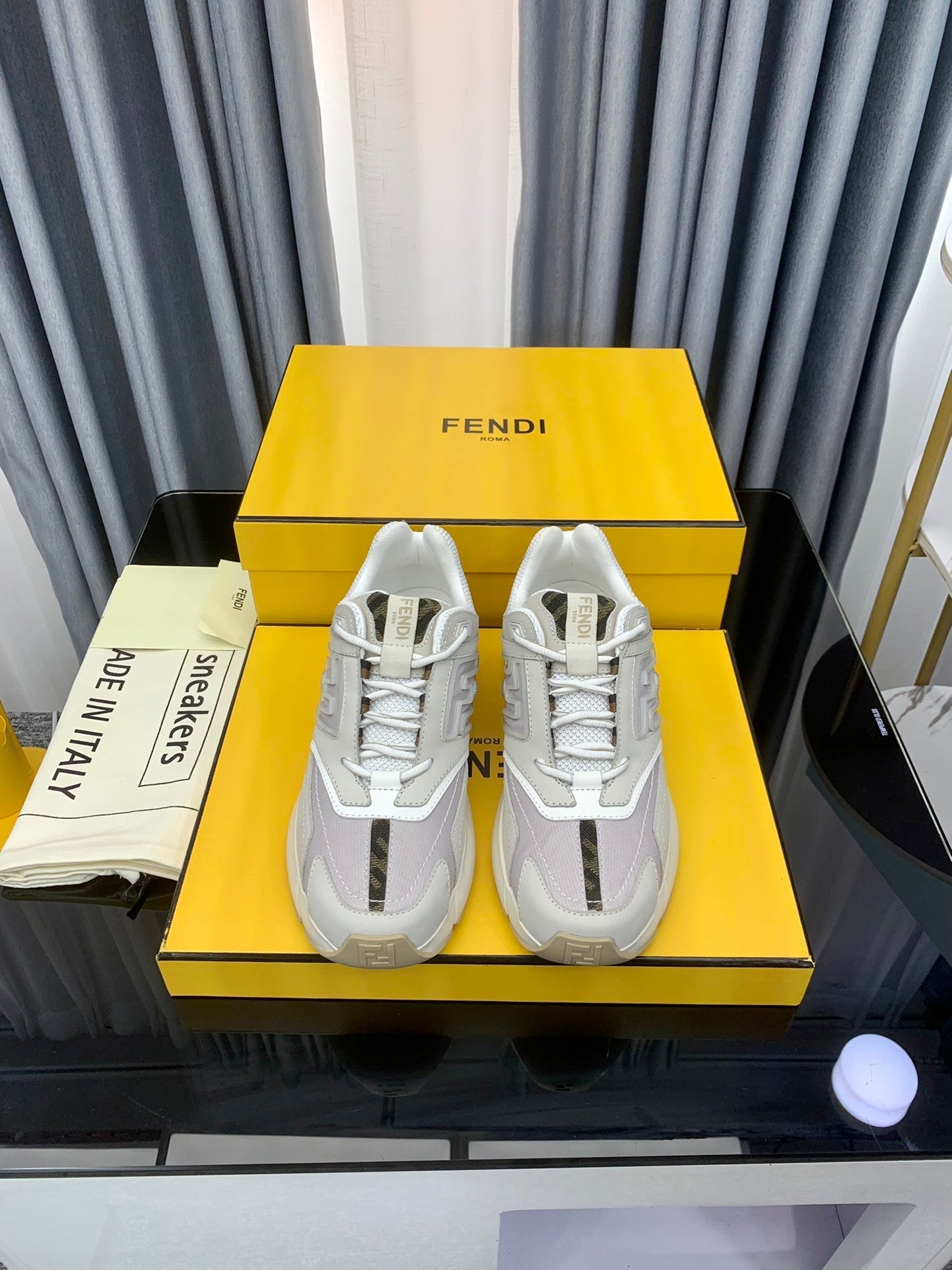 FENDI FASTER TRAINER IN GREY CALFSKIN AND SUEDE