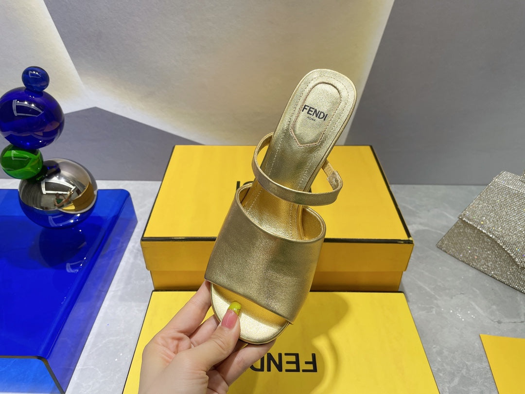 FENDI FIRST 95 MM HIGH-HEELED SANDAL IN GOLDEN LAMBSKIN GOLD HARDWARE
