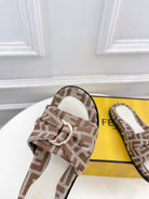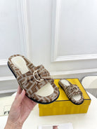 FENDI FLAT SLIPPER IN BROWN MONOGRAM JACQUARD FABRIC WITH GOLD HARDWARE
