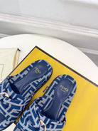 FENDI FLAT SLIPPER IN NAVY BLUE MONOGRAM JACQUARD FABRIC WITH GOLD HARDWARE