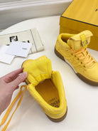 FENDI LOGO SOCK SNEAKER BOOTS IN CORN YELLOW LAMBSKIN