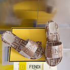 FENDI PLATFORM WEDGES IN ASH BROWN MIX WHITE FF MONOGRAM FABRIC