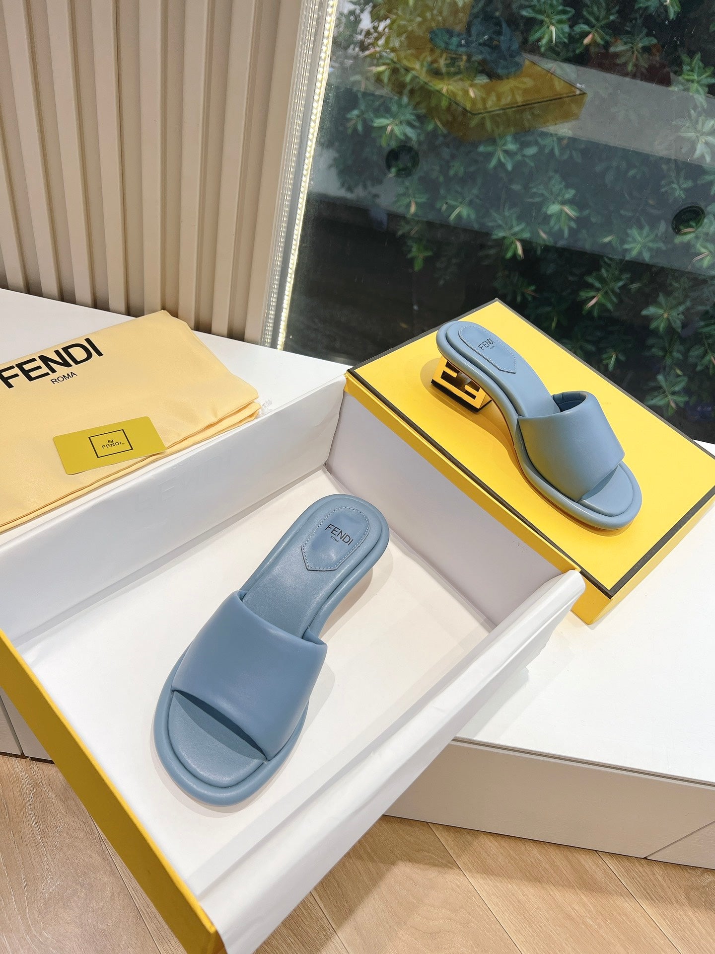 FF Baguette Slides Women 45 Nappa Leather Baby Blue