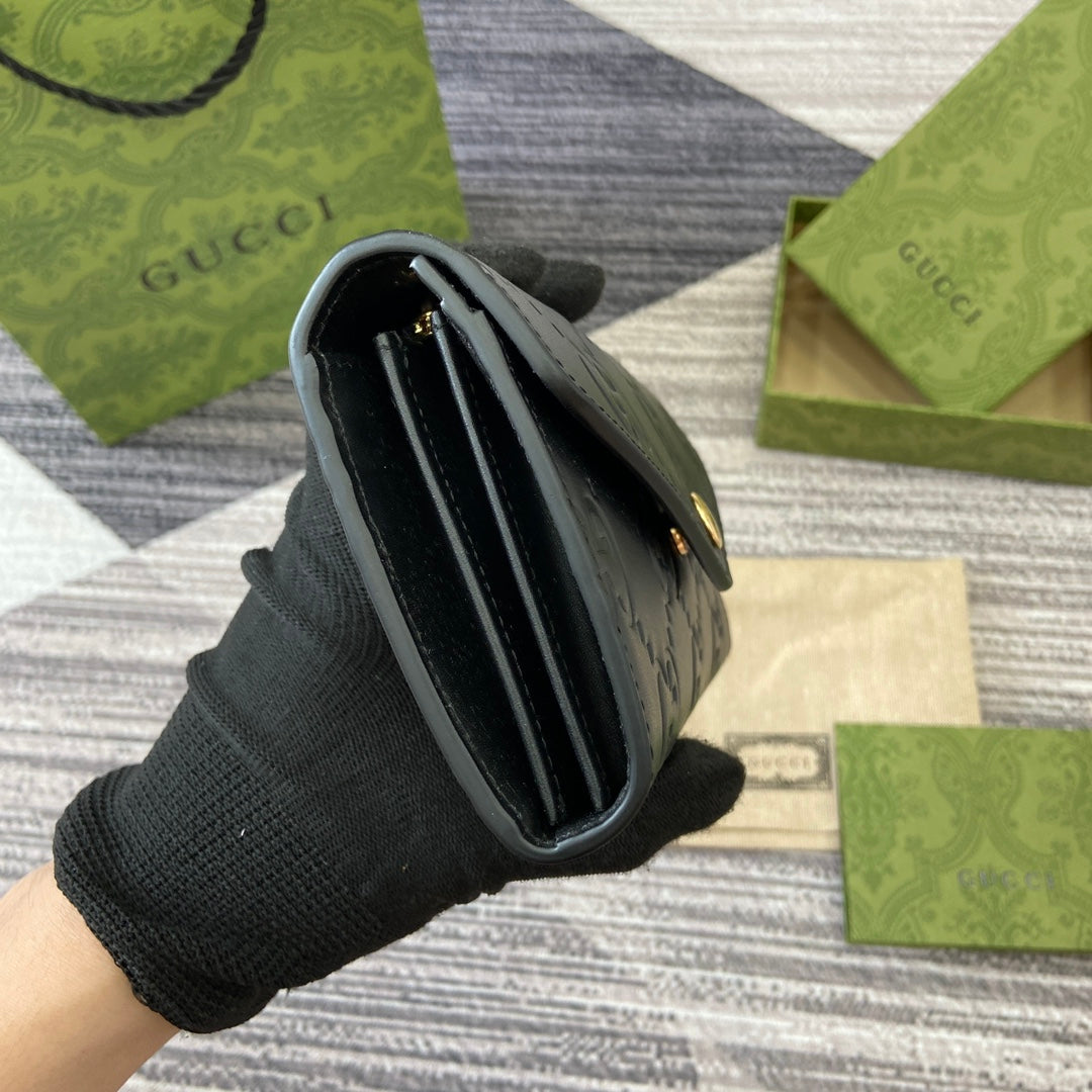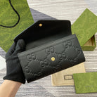 CONTINENTAL WALLET 19 IN BLACK EMBOSSED CALFSKIN GOLD HARDWARE